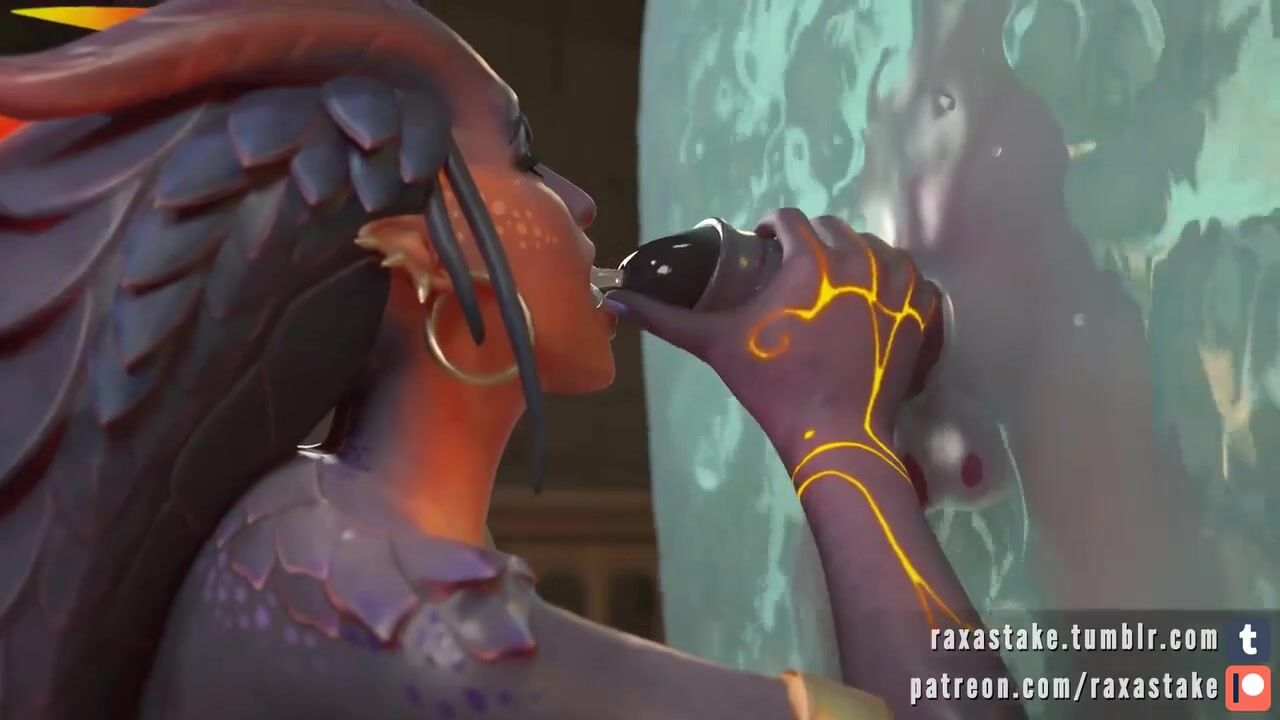 This hentai porn video description has been rephrased for clarity. "Symmetra from Overwatch game" is a reference to the character in the popular online multiplayer first-person shooter video game Overwatch. The video shows an animated 3D porn scene made by Raxastak using Source Filmmaker (SFM), a free software tool used for creating movies and animations. In this video, Symmetra invokes a demon who sucks her cock in a rule 34 style animation. You can find the link to the video on Raxastak's Tumblr page.