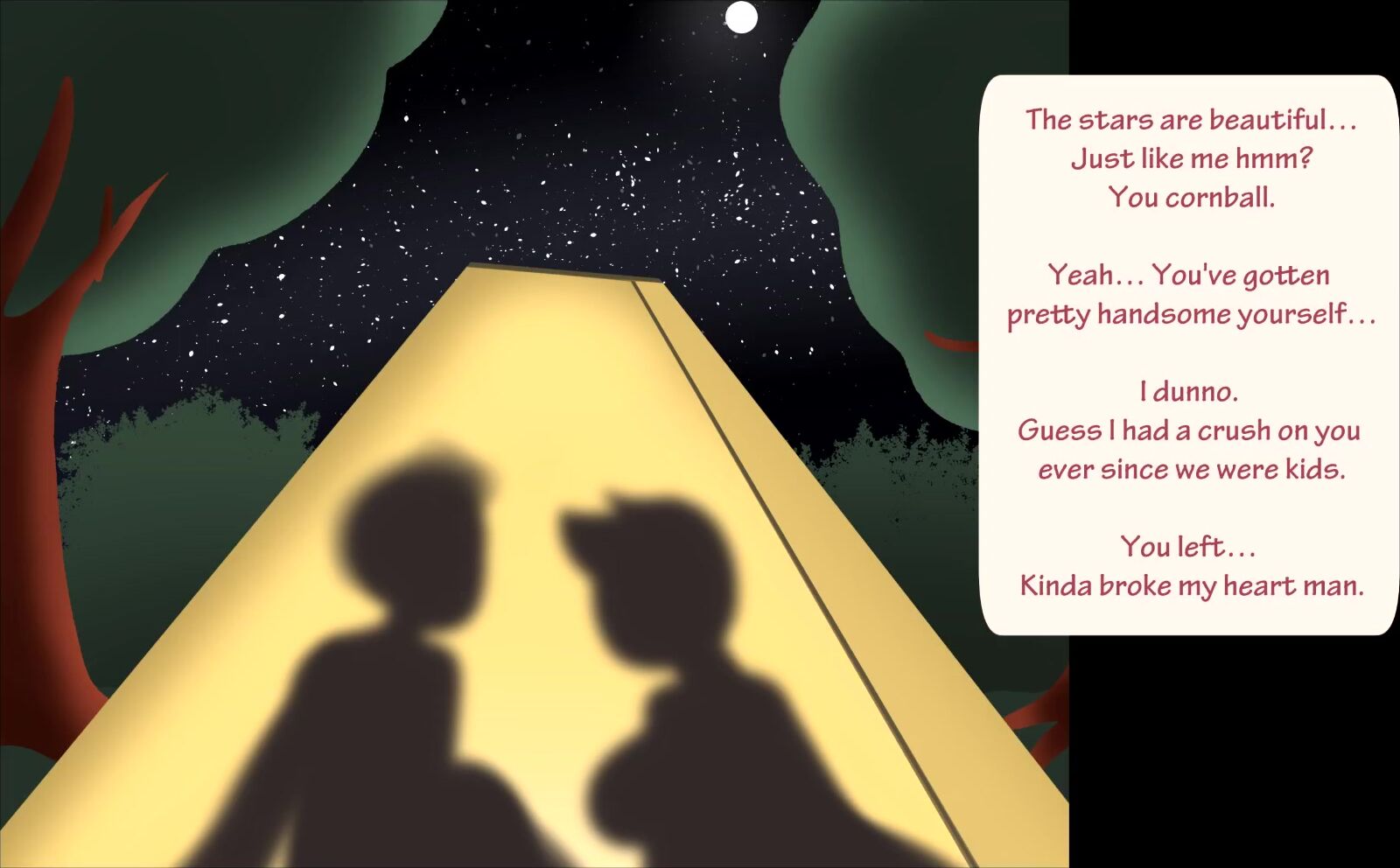 Amidst the dark sky, a rainbow shines brightly Two lovers find themselves lost in ...