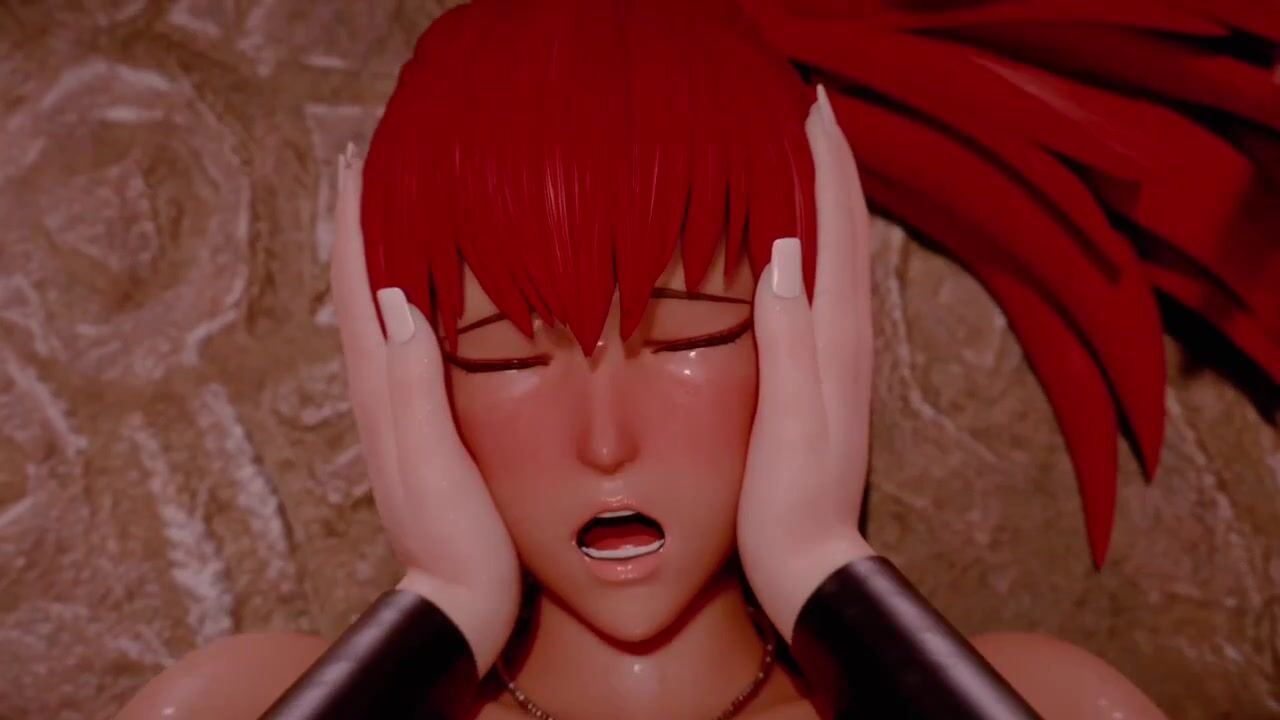 Mai Shiranui blends into an animated hentai porn scene