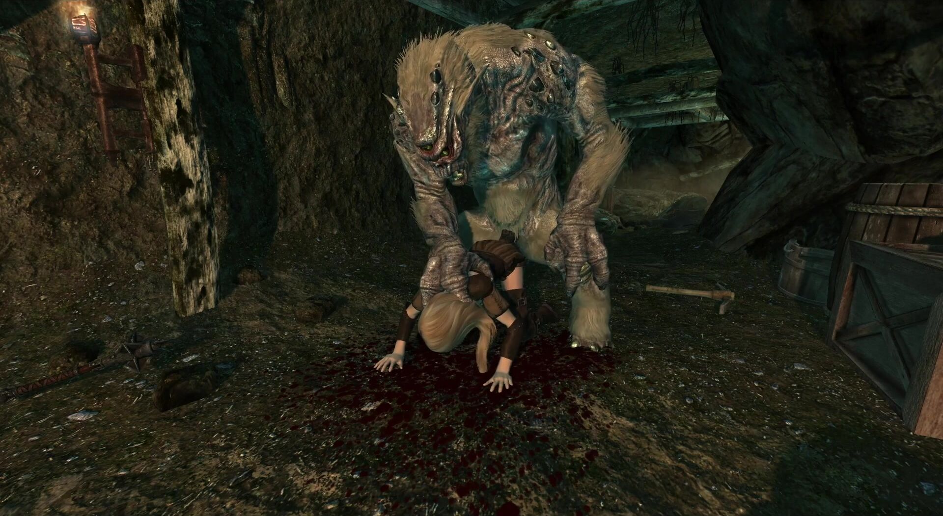 Arabella, an apprentice Vigilant of Stendarr, goes on a quest to find missing Vigilants who have disappeared from Fort Fellhammer. She explores the mines beneath the fort and encounters various obstacles while adventuring in Skyrim. This hentai PORN video description is rephrased for clarity. Episode two of "A Day In Skyrim" follows Arabella as she investigates the missing Vigilants in Fort Fellhammer. The episode was filmed using TESV: Skyrim and relevant mods are listed at the end of the video. Animations were created by Billyy and Nibbles, while dialogue was made using xVASynth as well as extracted in-game combat shouts and dialogue. Cinematography, SFX, and editing were done by ADayInTamriel. Skyrim is a game developed by Bethesda Game Studios, so the artists responsible for this hentai PORN video are unknown.