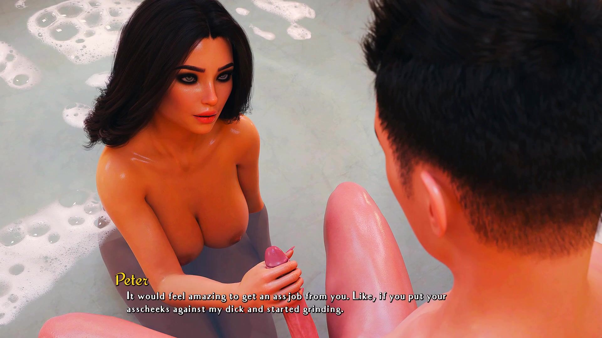 This video description is about a dating simulator game called "Being A Dik". In this chapter, the player character Peter goes on a date with his girlfriend Jill to meet her parents at their house. The encounter doesn't go as planned when Jill introduces Peter as her official boyfriend, causing shock and dismay from her socially privileged mom and dad. However, things take a turn for the better when Peter is rewarded with a relaxing soak in the family jacuzzi with Jill by his side. She then proceeds to give him an assjob, boobjob, and blowjob in succession before swallowing all of his load. Overall, this hentai PORN video description is quite detailed and playful, but it doesn't offer much insight into the gameplay mechanics or storyline of "Being A Dik" season 3.