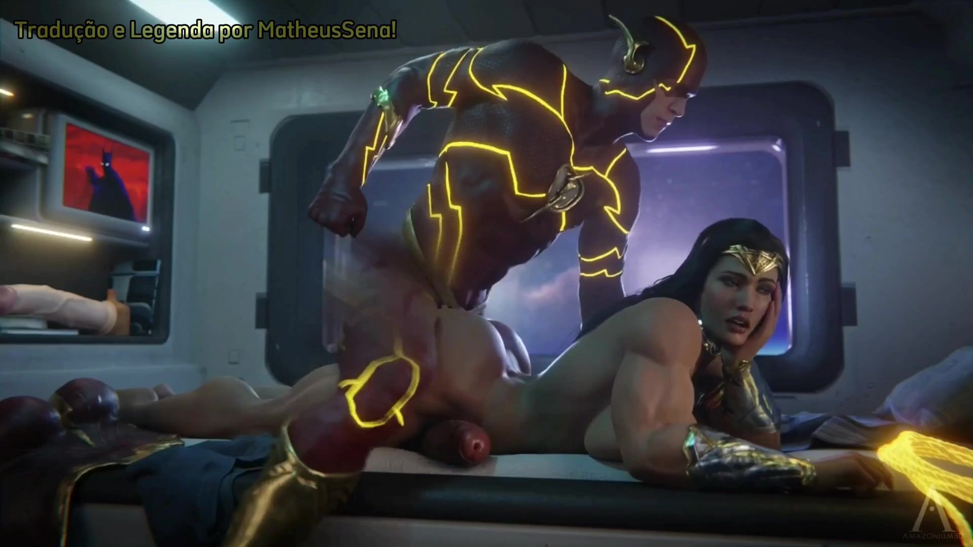 Meu primeiro vídeo desse artista. Nele temos a Diana sexualmente frustada pq não tem ninguém para foder ela do jeitinho que ela gosta, mas isso muda rapidamente. Um adendo: nos comentários do vídeo original tinha alguém falando que a Diana não sentia nada no sexo com o flash pq ele é muito rápido. Isso está errado, o motivo é pq o flash simplesmente é pequeno demais para a Mulher Maravilha. Se ele tivesse uns 50cm de benga iria parecer um vibrador socado dentro dela.