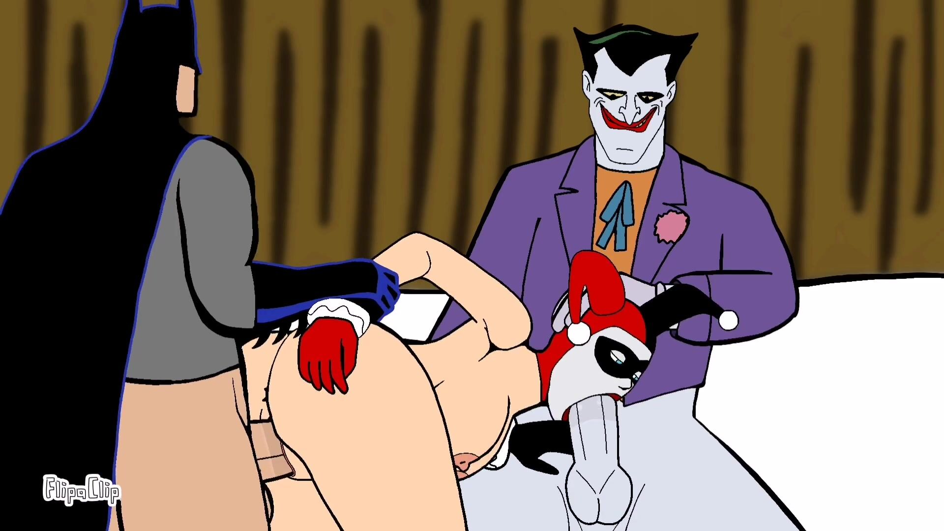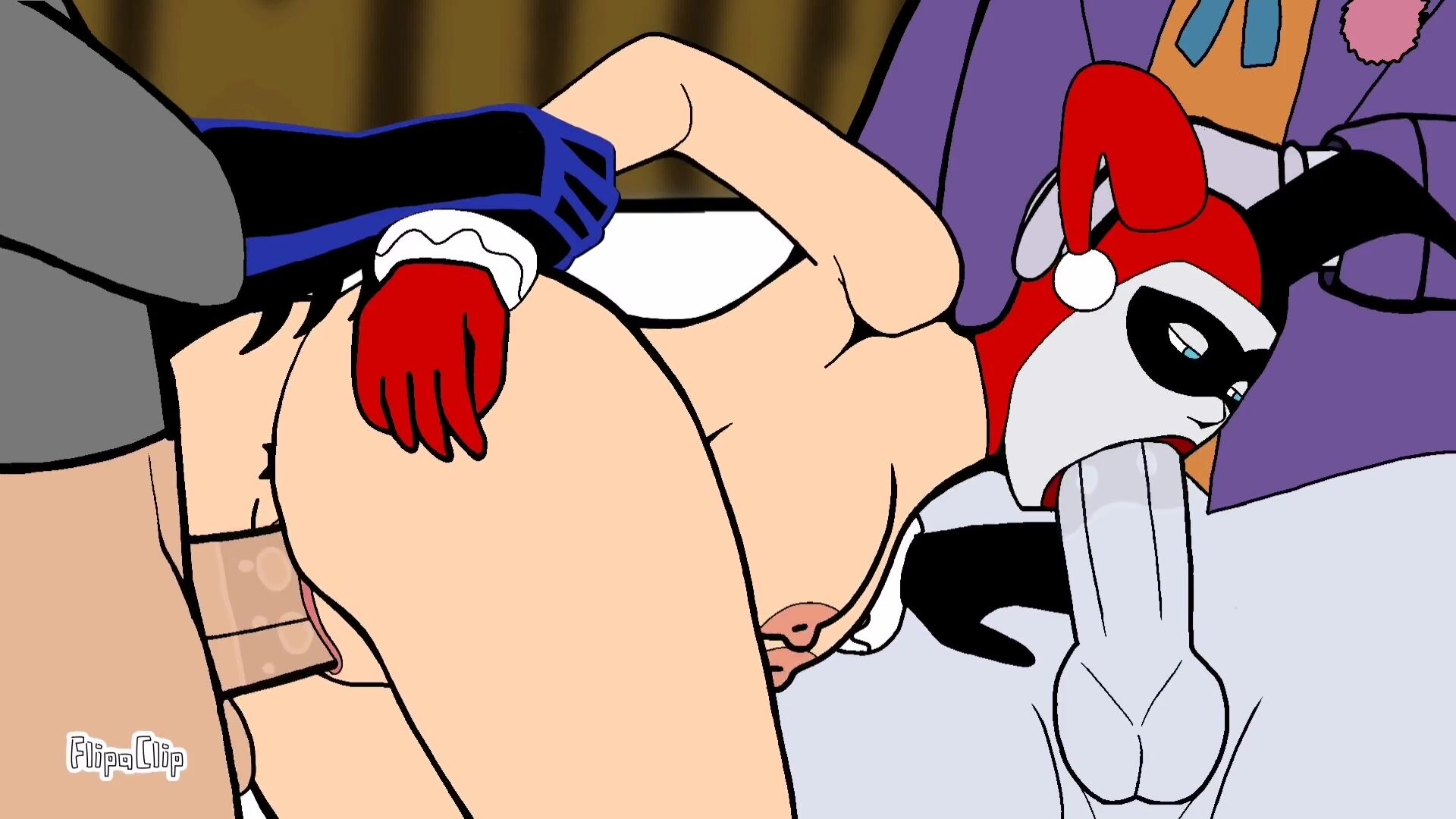 The clown and the mouse were getting fucked by Harley in a threesome hentai porno scene.