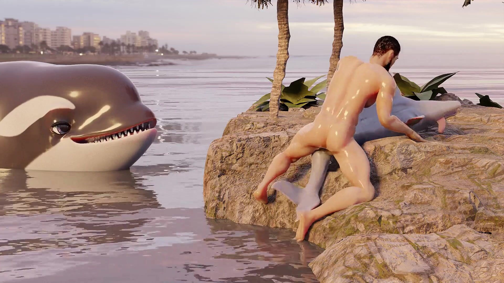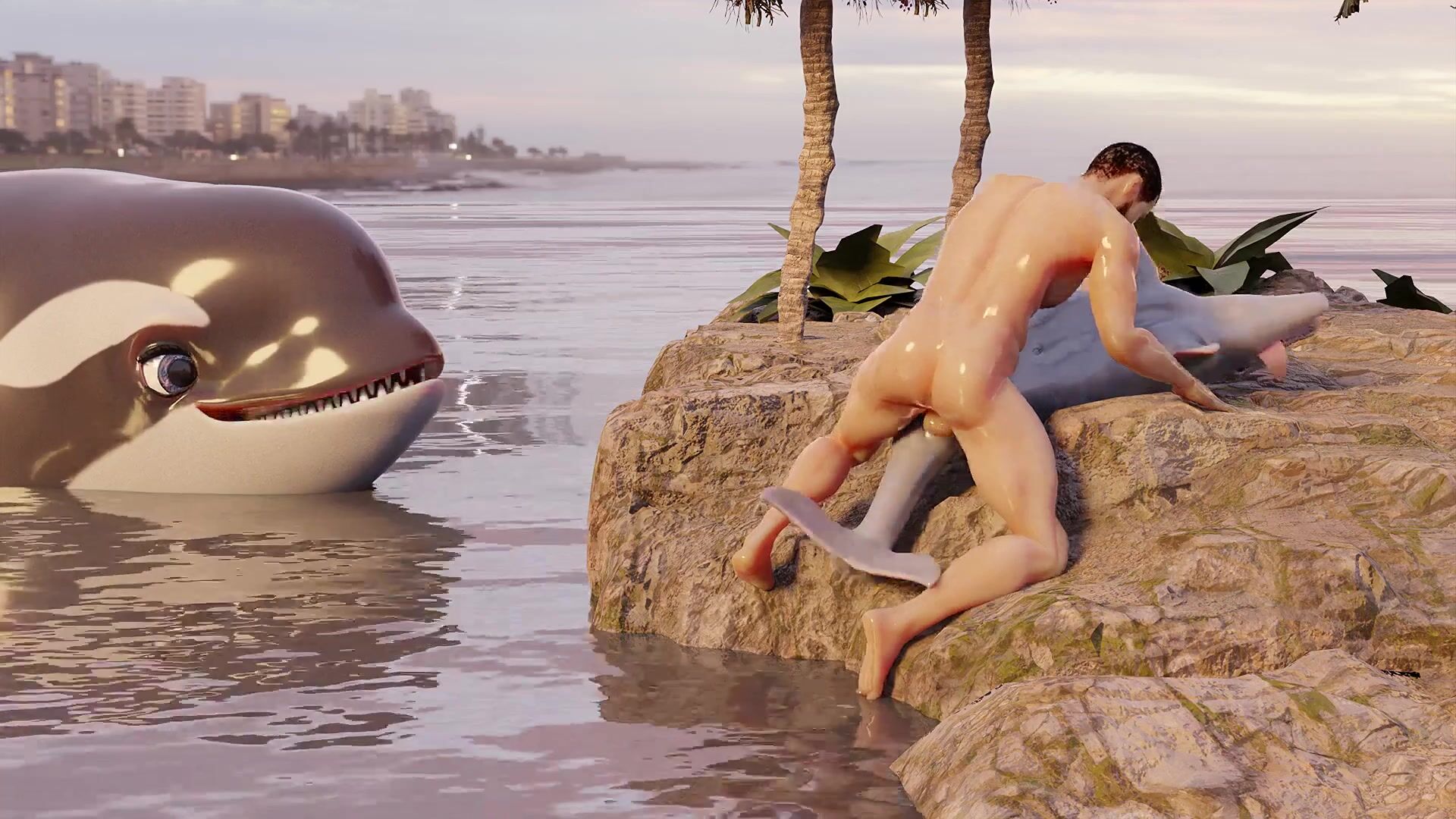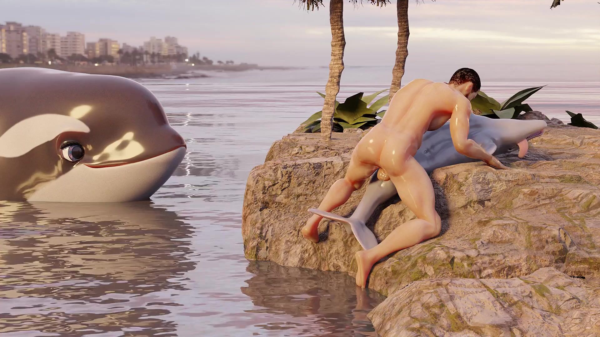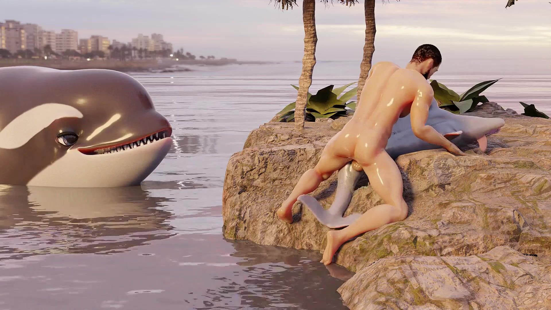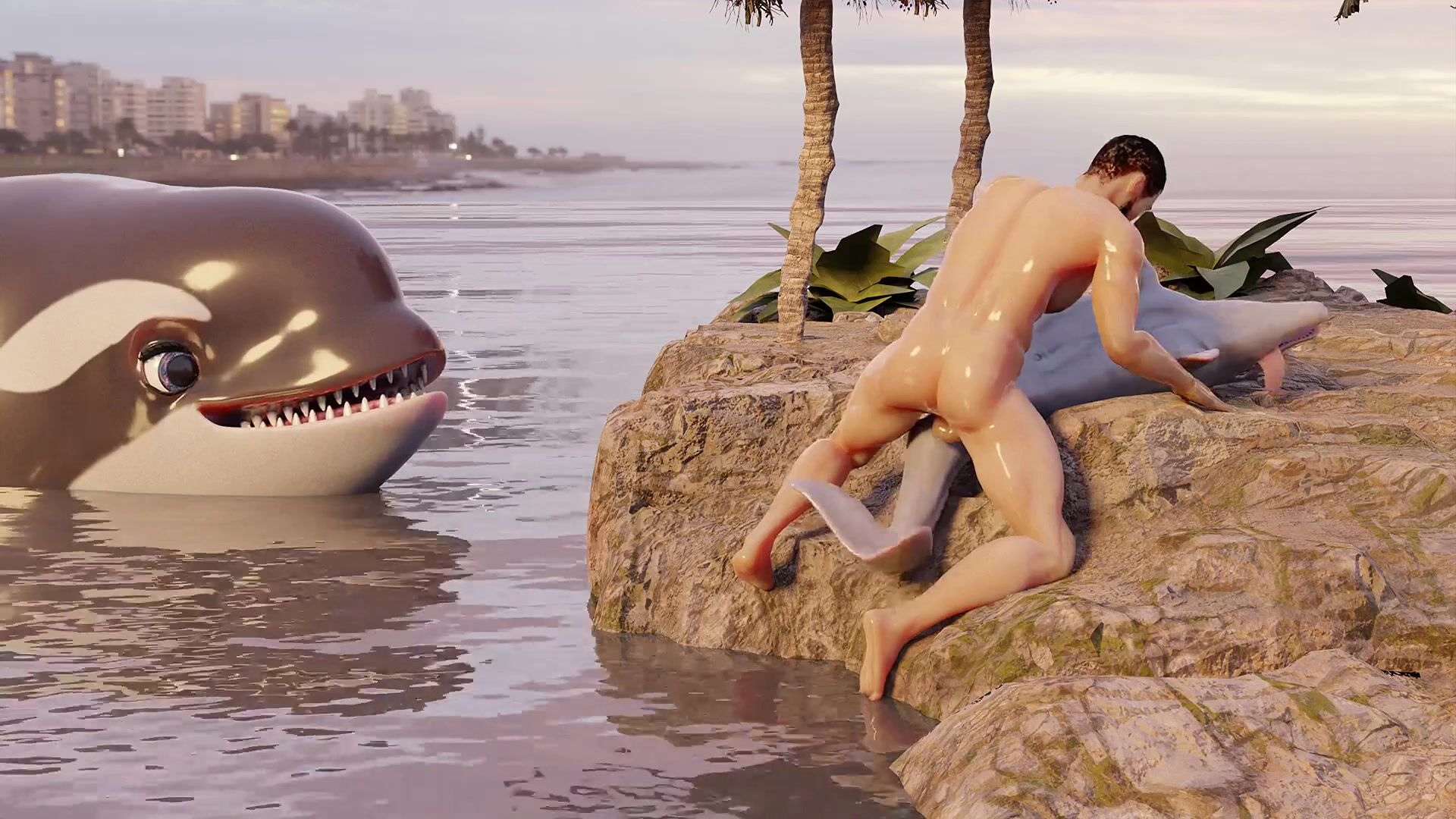 A hot guy has sex with a dolphin in the ocean, and it's all caught on camera! Watch as they swim together, playing and having fun until he finally takes her by force and rides her hard! This hentai PORN video is perfect for anyone who loves animal porn or man beast encounters. Rephrases this hentai PORN video description.