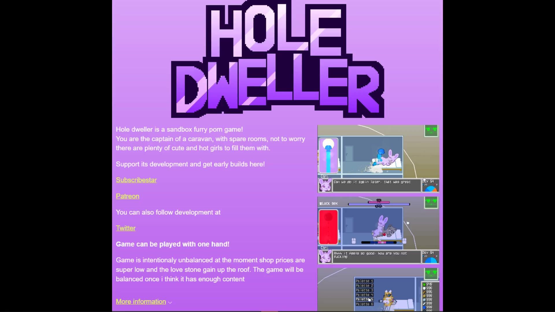 This hentai PORN video description rephrased in a more formal manner. The website Itchi.o offers a little game that can be downloaded under the URL "https://thighhg.itch.io/hole-dweller".