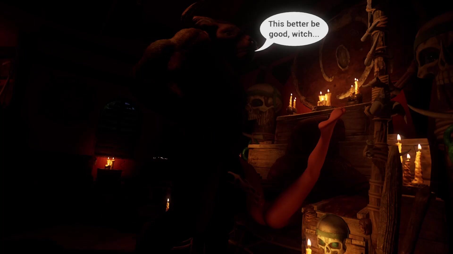 Your elf wife and the captain use the pirate witch's magic to take their pleasure to another level.