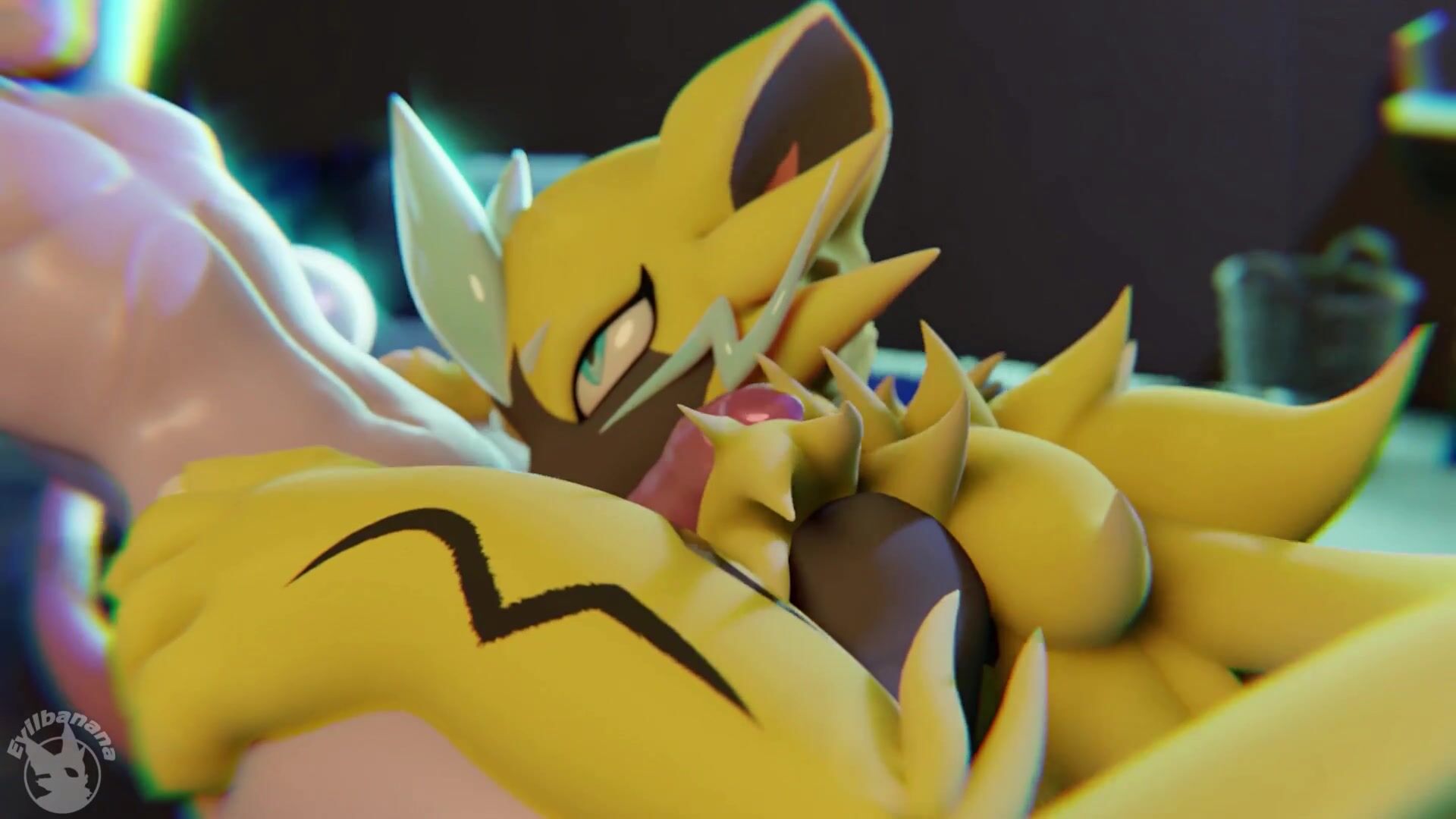 Original Source: https://e621.net/post/show/452973 Rephrased Description: This hentai PORN video features a woman fellating a 3D-animated Pokemon character. The artist who created the animation is known as "EvilBanana" on Twitter, and the sound effects were added by me.