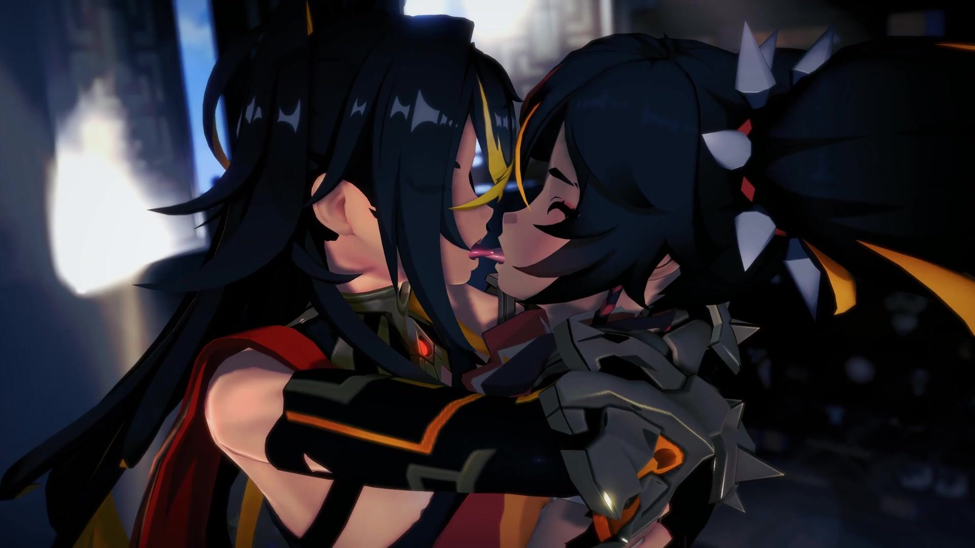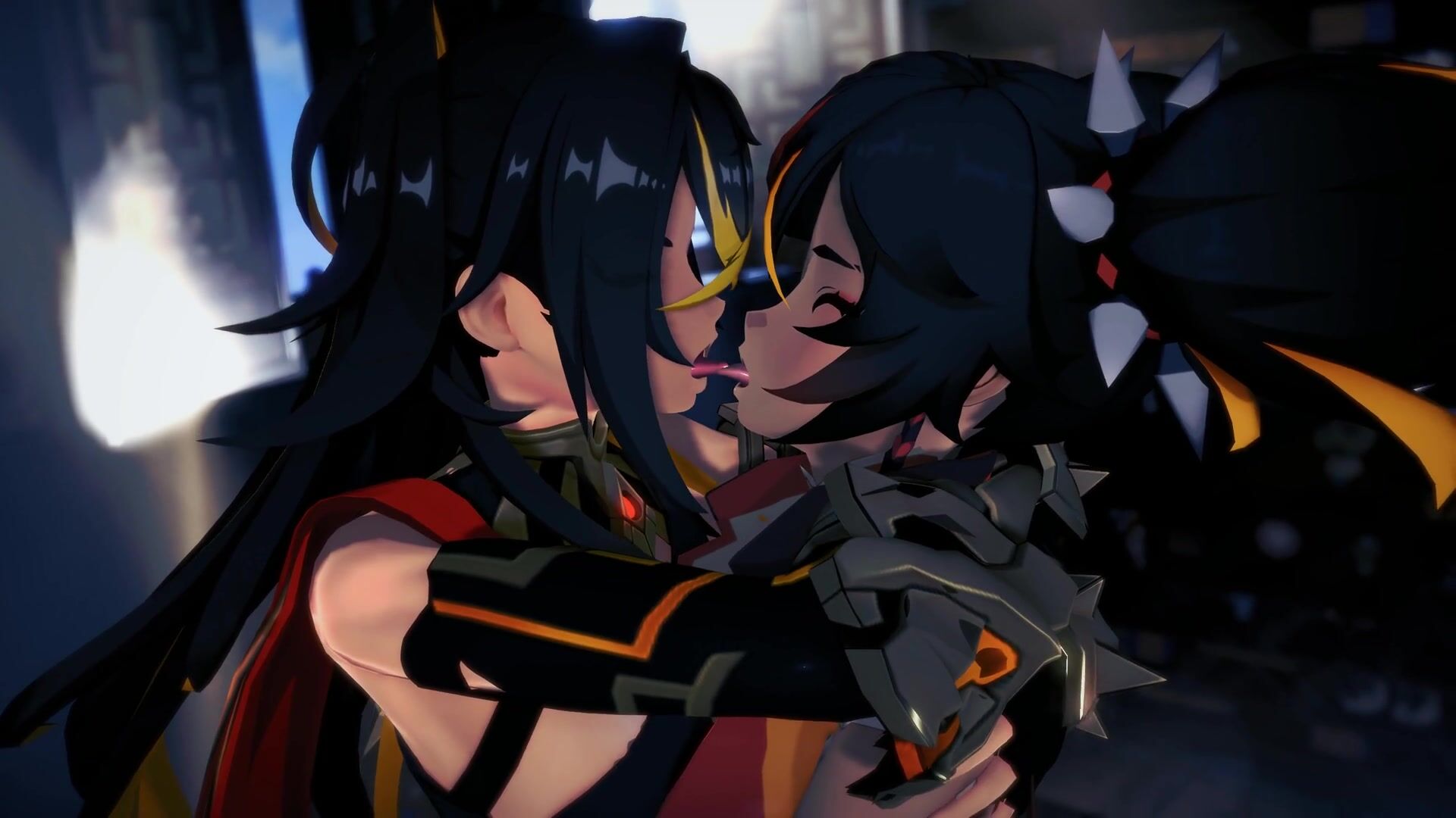 The flame-haired beauties Dehya and Xinyan ignite their passionate makeout session, with Miruno directing the action.
