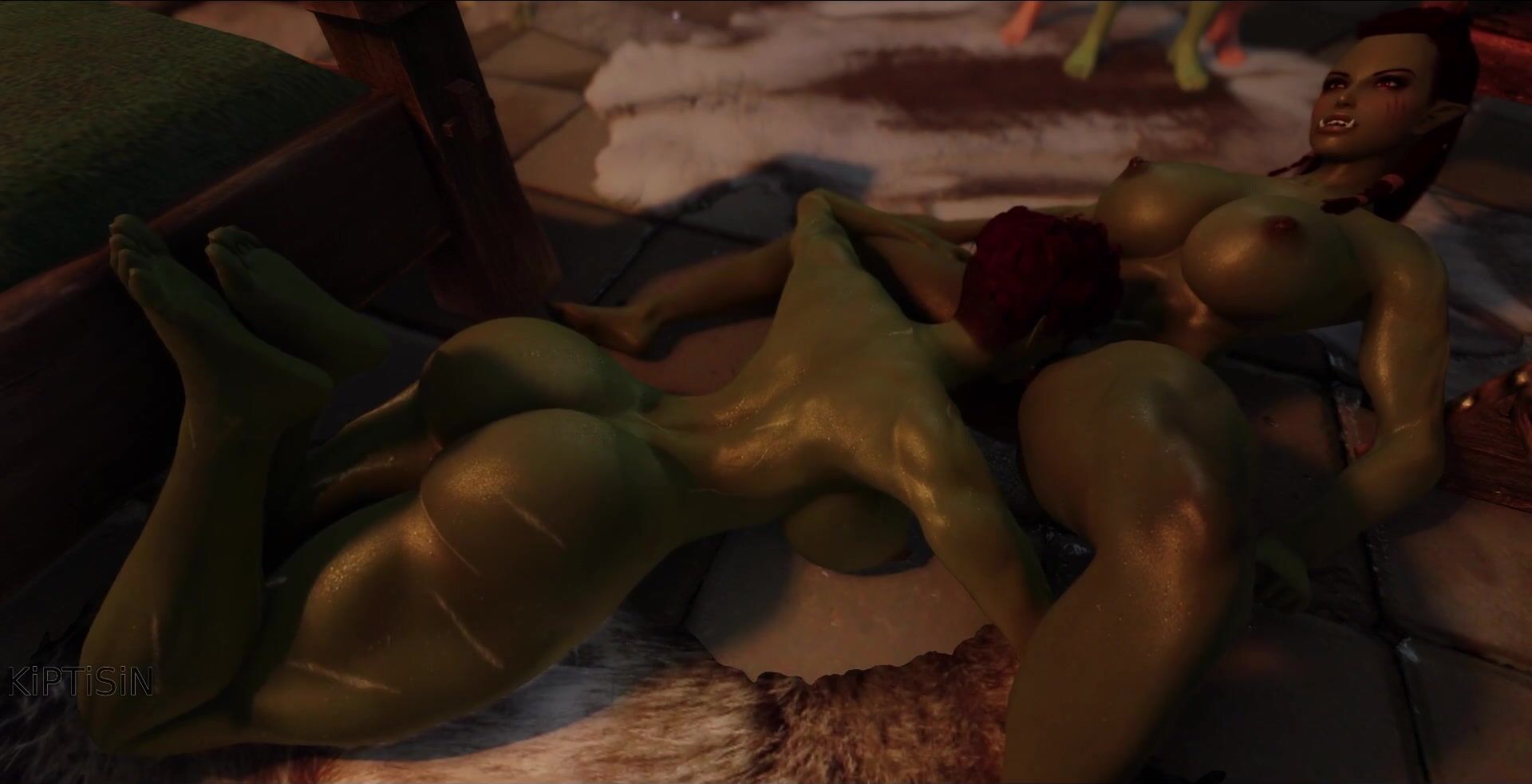 The futanari brunette bangs three orc girls and fills their stomaches