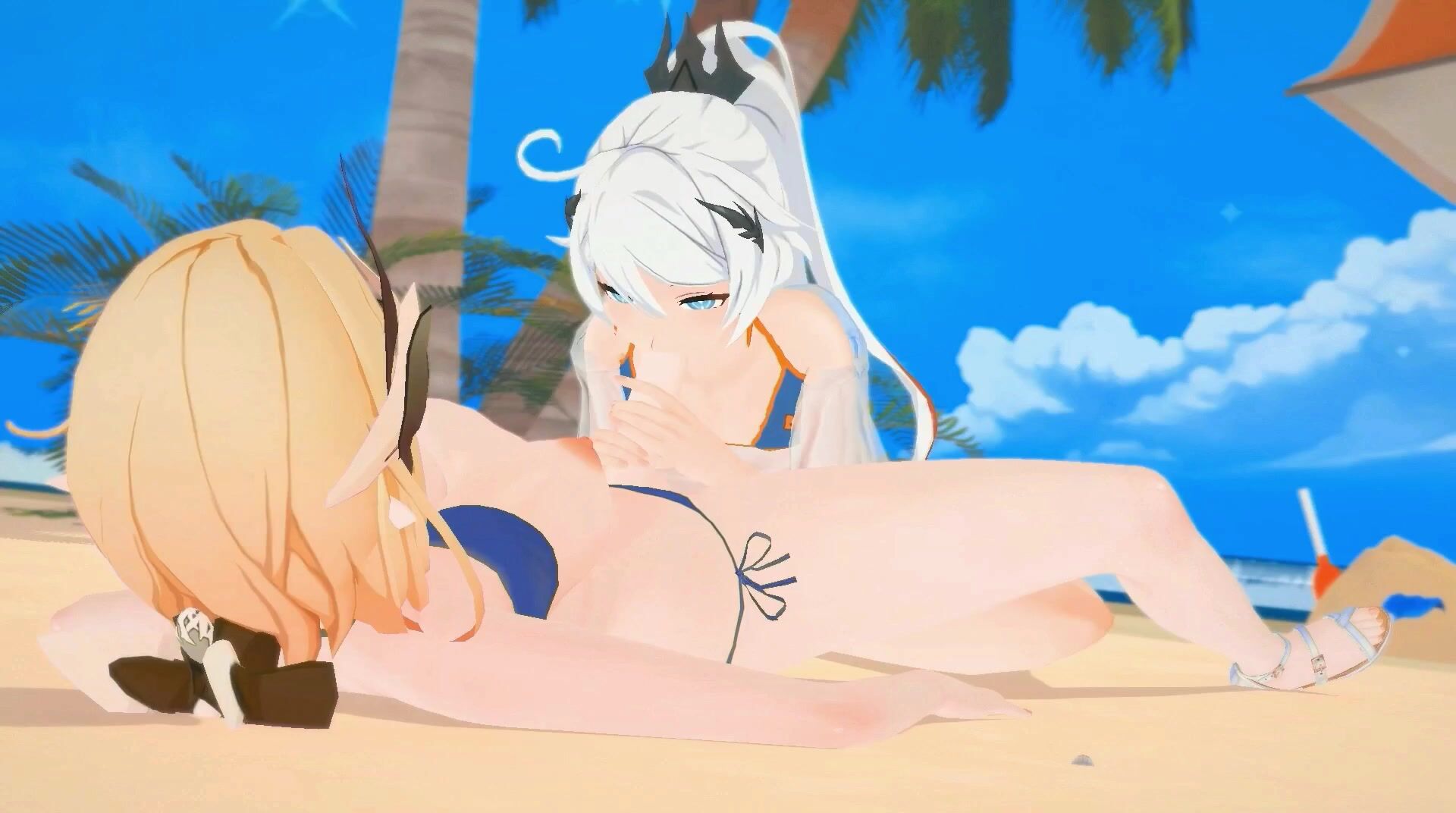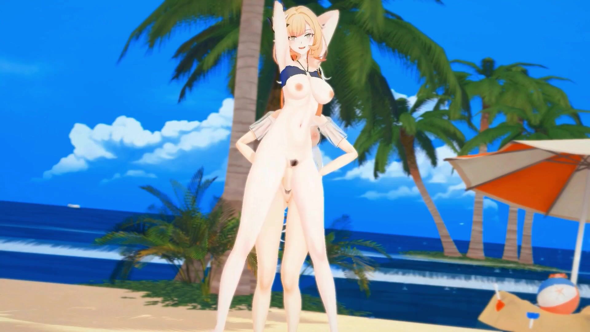 The Hentai Futa on the Beach: Elysia and Kianas Futanari Impact with Orange Hair 3D MMD Sex Scene
