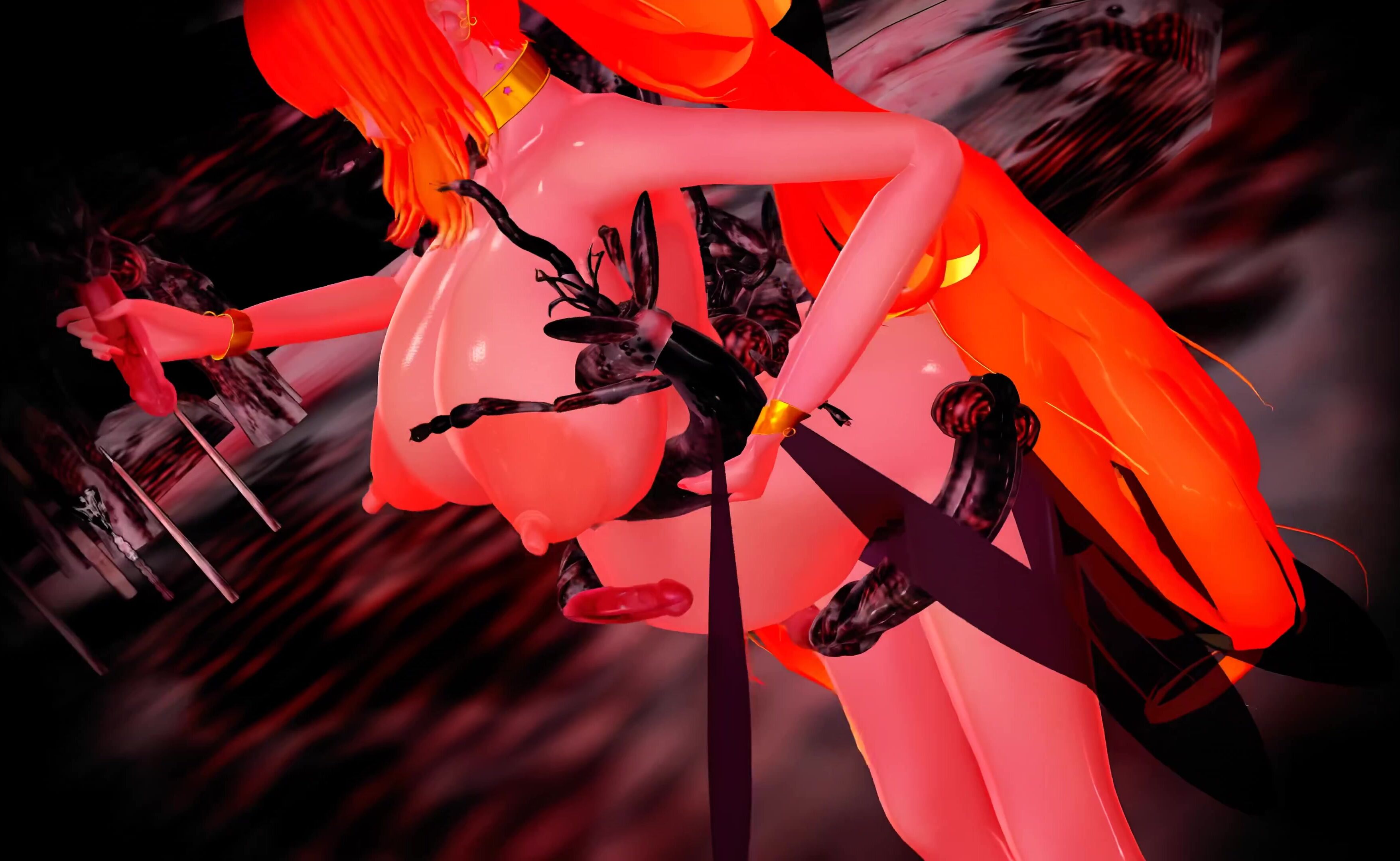 Watch as the sexy demon slayer fights off a horde of horny demons with her magical...