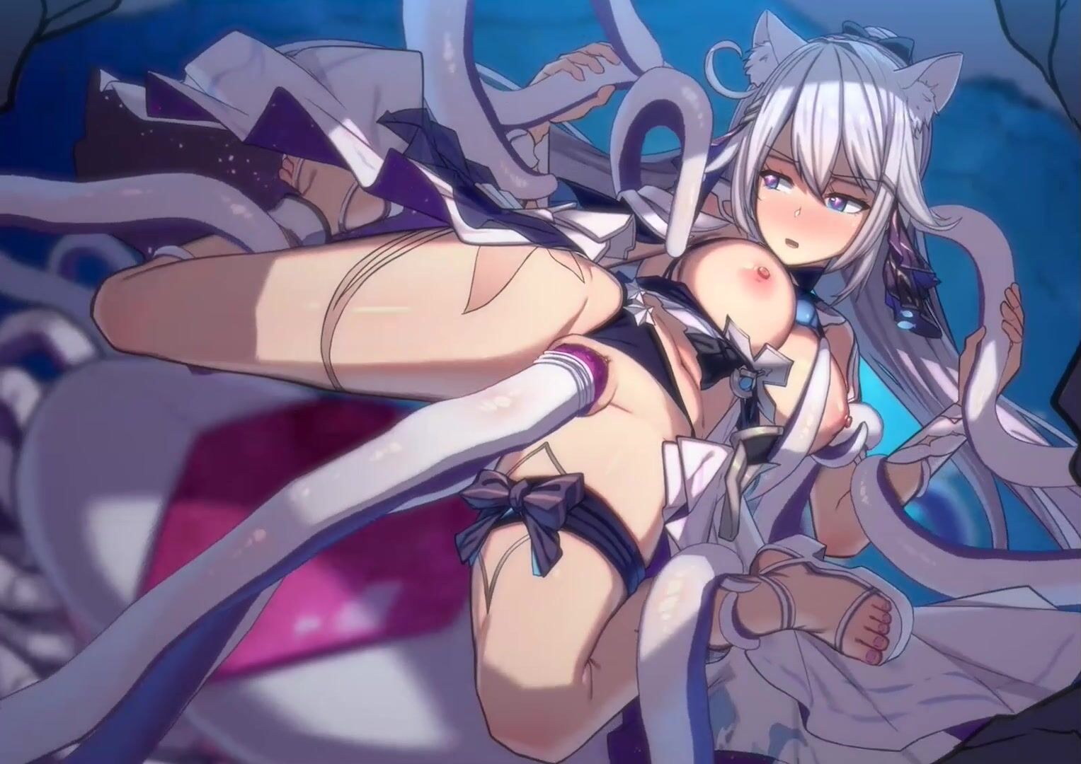 Watch as the sexy demon slayer fights off a horde of horny demons with her magical...