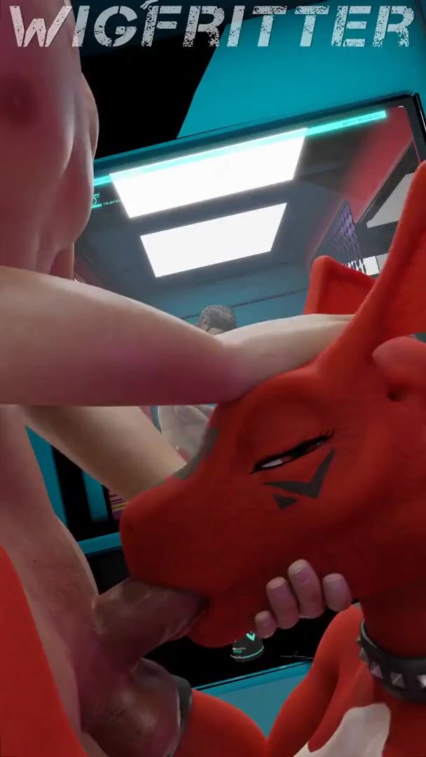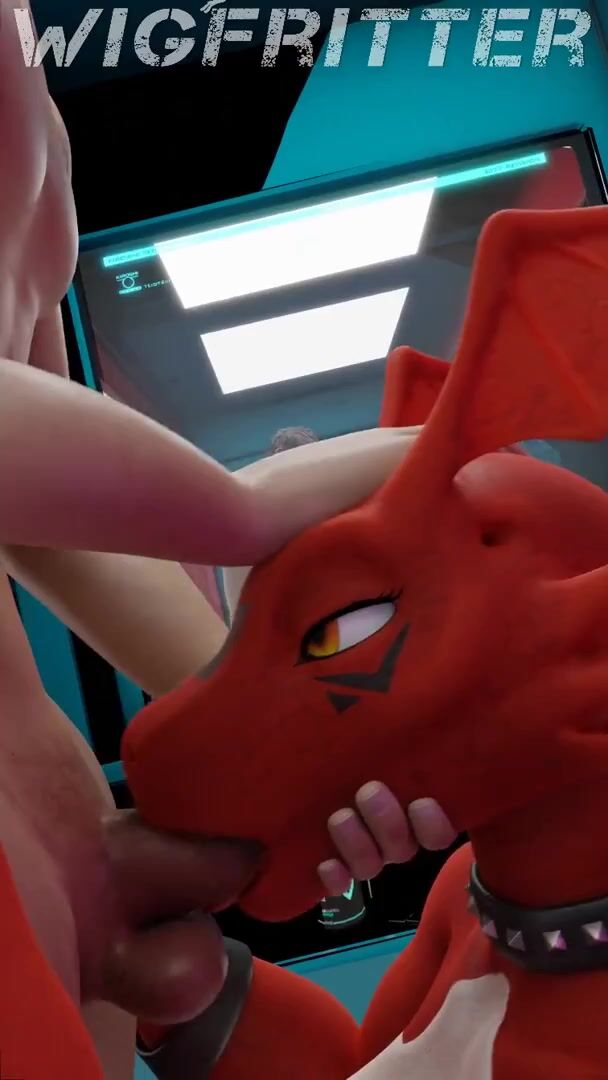 The Legendary Digimon Guilmon Takes a Wigfitter Blowjob