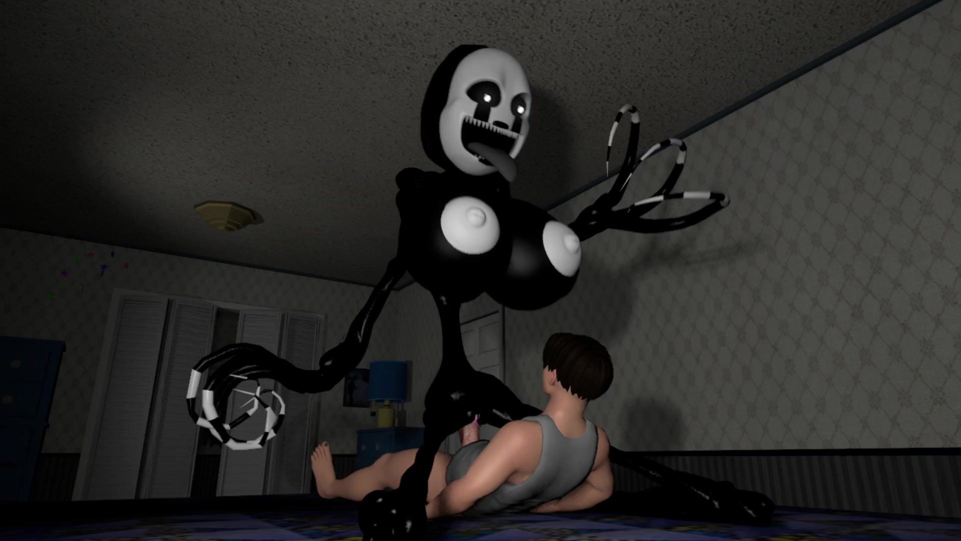 Nightmarionne has cowgirl sex with Michael.