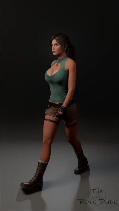 Rephrased this hentai PORN video description as follows: Lara Croft walks around the city, then cycles on a bicycle while wearing tight and revealing clothing. The camera focuses on her curvy body as she moves along in slow motion.