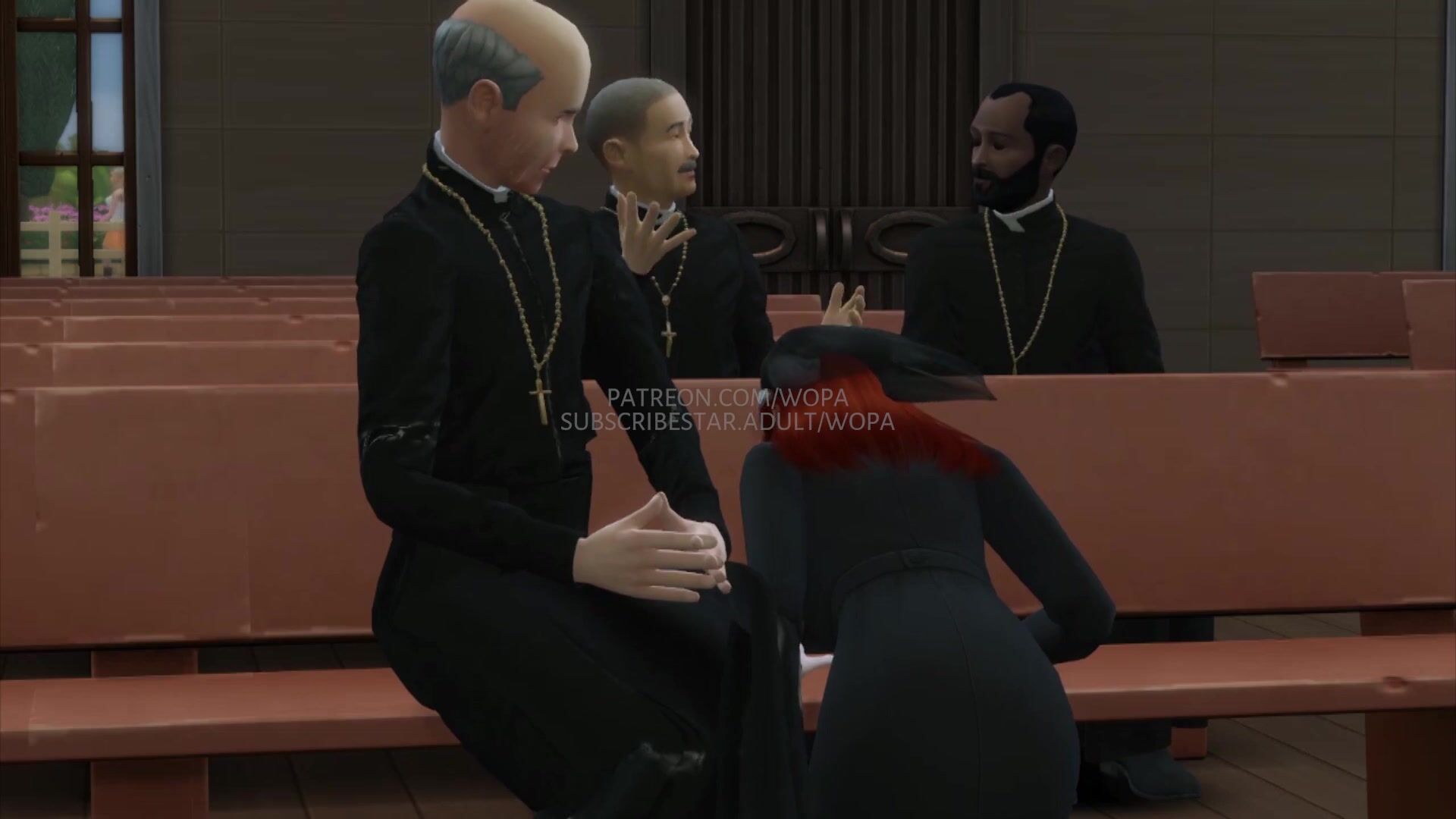 This is a hentai porn movie description about an innocent nun who spies on a priest and then goes to suck his dick with great desire.