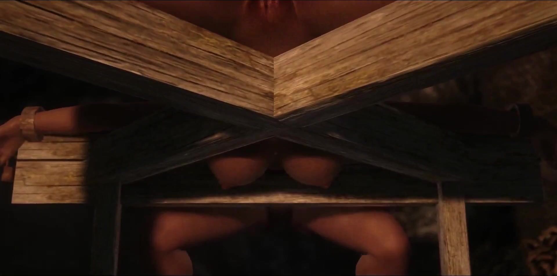 A vampire breaks into a Dawnguard Soldier who has been captured, in this hentai PORN video description.