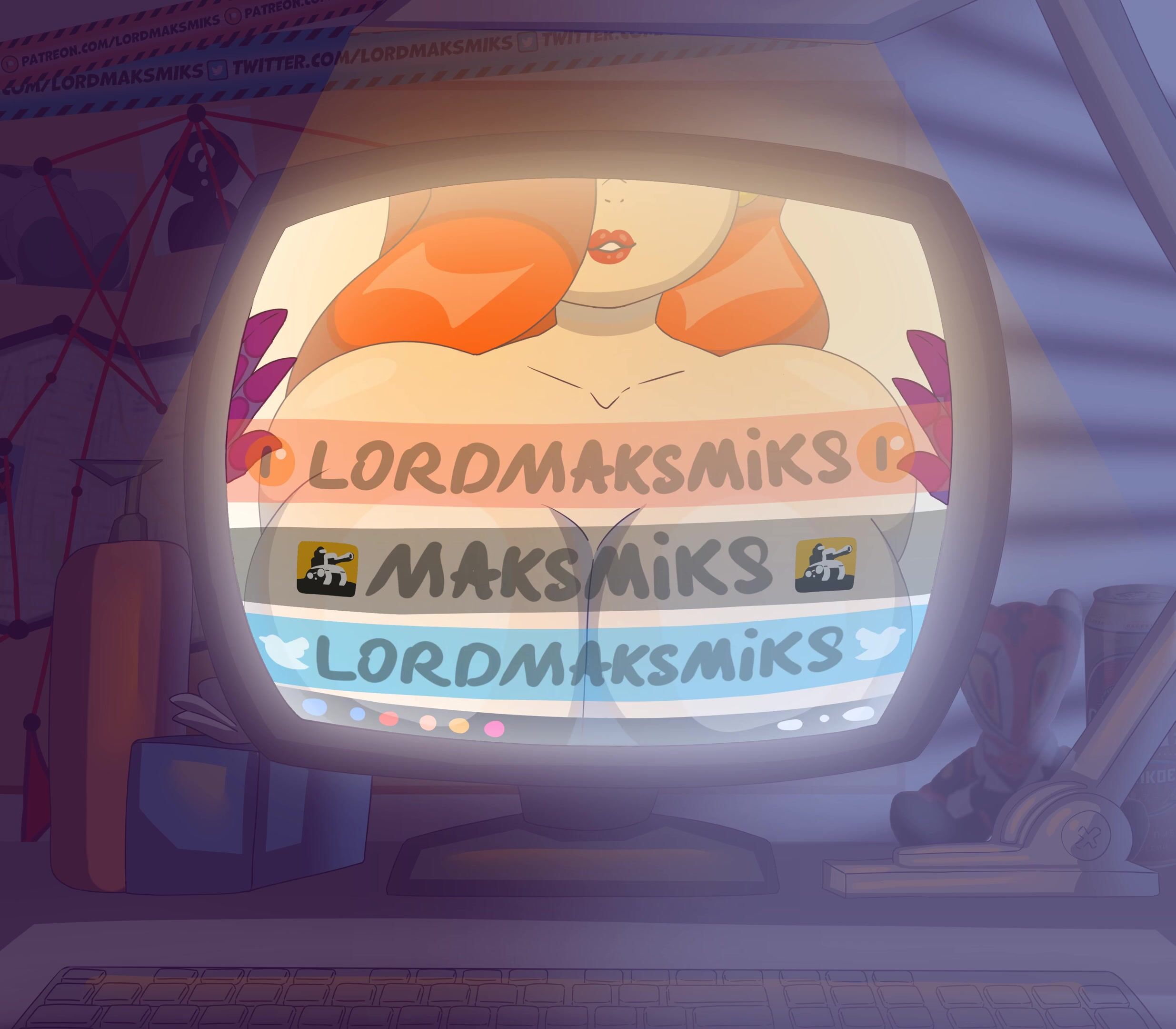 This is a hentai PORN video description, where the director is Lord MaksMiks and he has uploaded it on his patreon account. The boosty.to link leads to another site with more links. The twitt