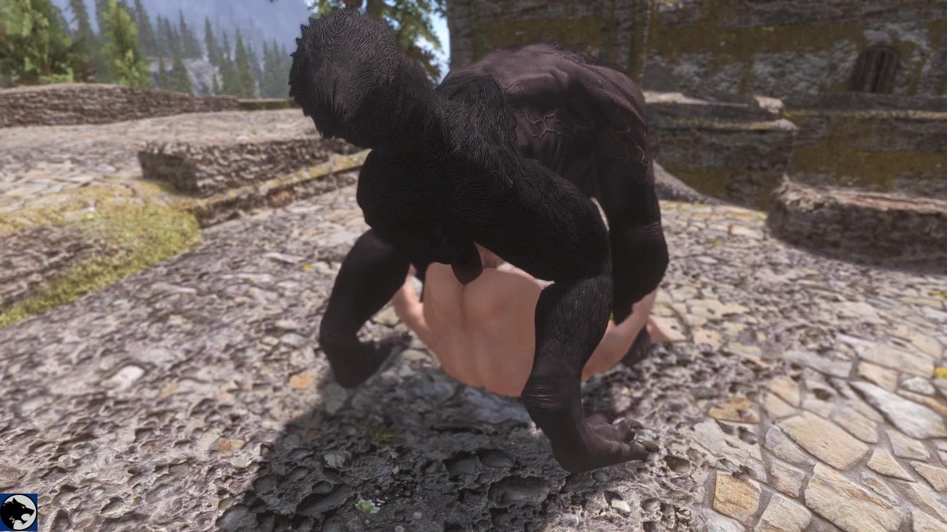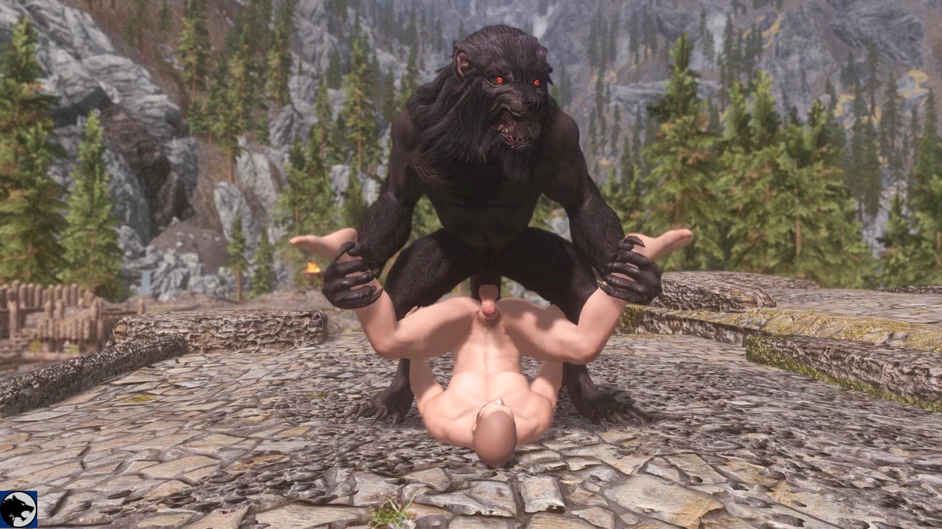 "The Noble Wolf and the Lady's Passionate Embrace"
