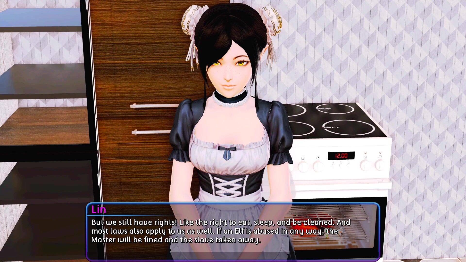 This hentai PORN video description has been rephrased for a more detailed and playful tone, with emphasis on the storyline and character development of this adult game by Runey. The first chapter of Harem Hotel is introduced, where the player assumes the role of Big John - a healthy young man who inherits an exquisite luxury hotel in Sylari - a fantasy city known for its economy based on Elf slavery. Upon arrival, Big John discovers two odd things: one, that the "Harem Hotel" as he calls it seems to attract only handsome and single young ladies such as the nerdy and temperamental Kali - the daughter of a local tycoon, and another is that apparently it is not only legal but in fact, the country's entire economy is based on Elf slavery. Much of the Harem Hotel is being run by Lin - a cute little Elf slave maid also inherited from Big John's grandfather. While Big John's general stance towards slavery is obviously negative, it is pretty hard to resist the temptation of exercising one's power over such a cute little thing as Lin... isn't it? This hentai PORN video description ends with a link to the game itself and the creator's Patreon page for further support.