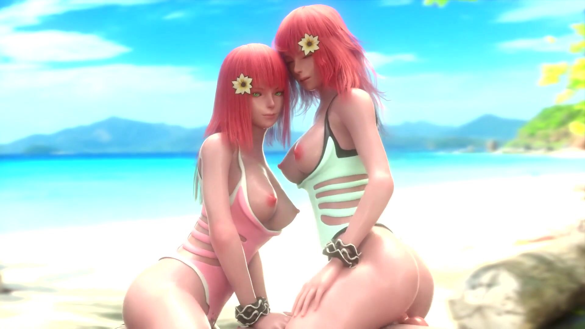 Popola anal riding dick while Devola is face sits. Bikini clothes, beach.