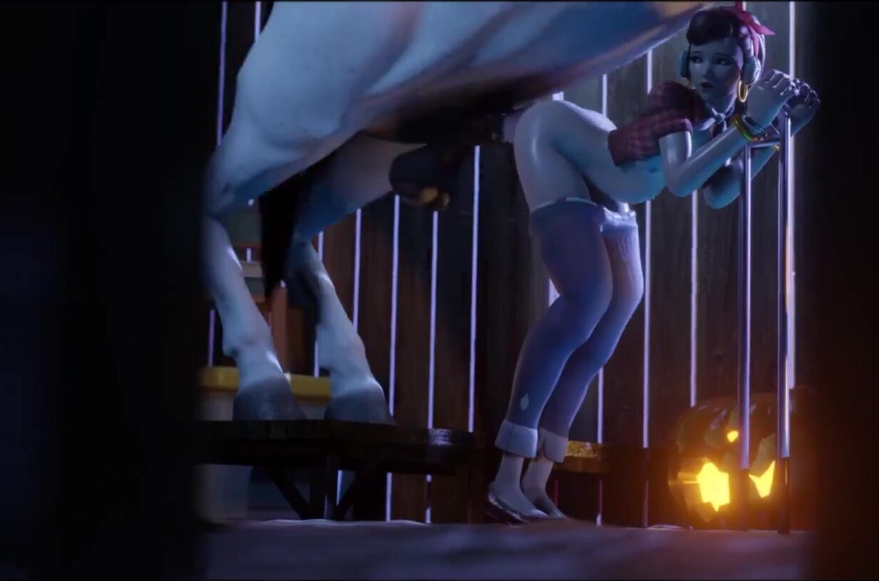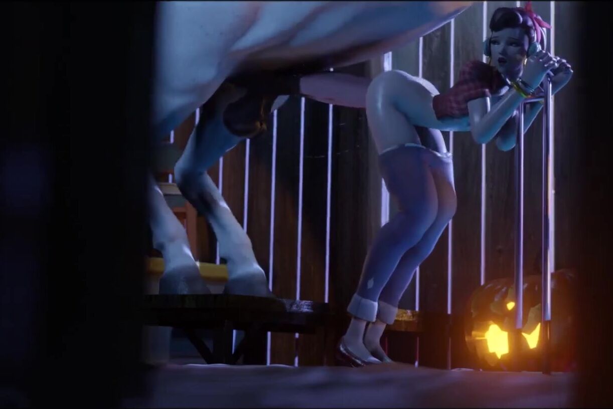 The sexy cyborg, Dva, rides the muscular horse-like crusier in a wild and passionate threesome!