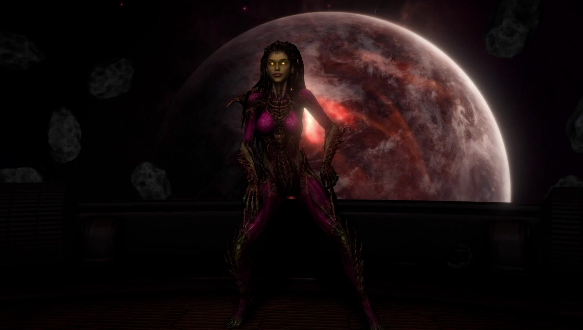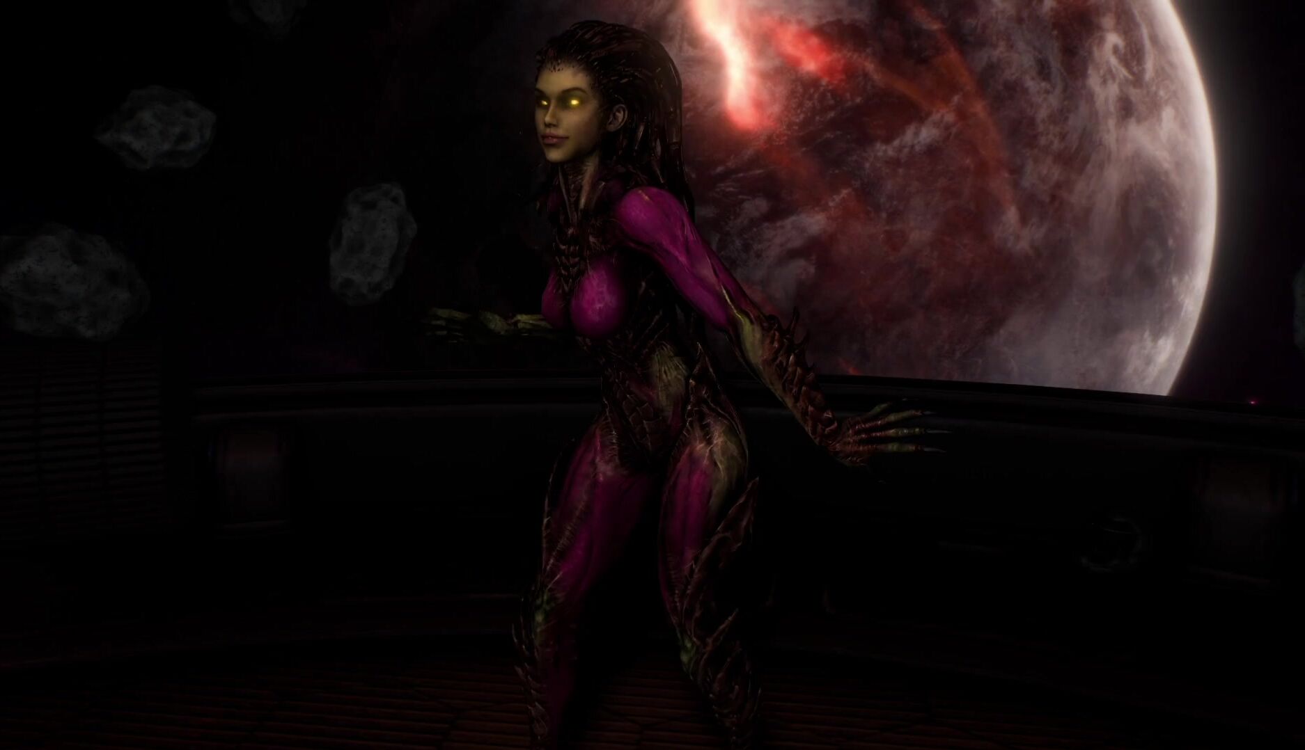 The sexy intergalactic adventure begins as Kerrigan, an alluring alien, dances seductively on a spaceship