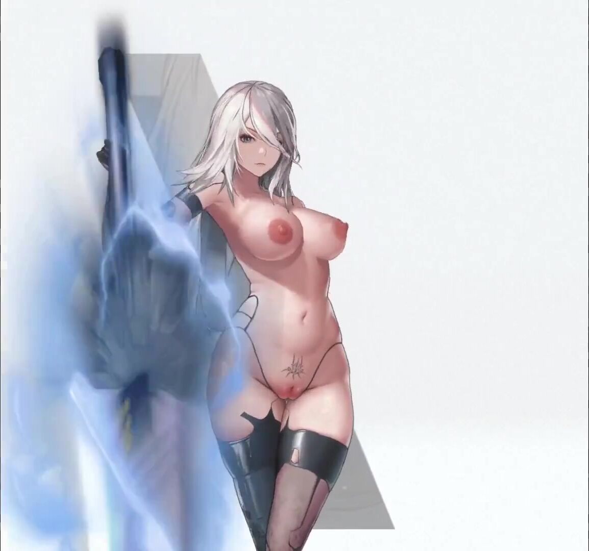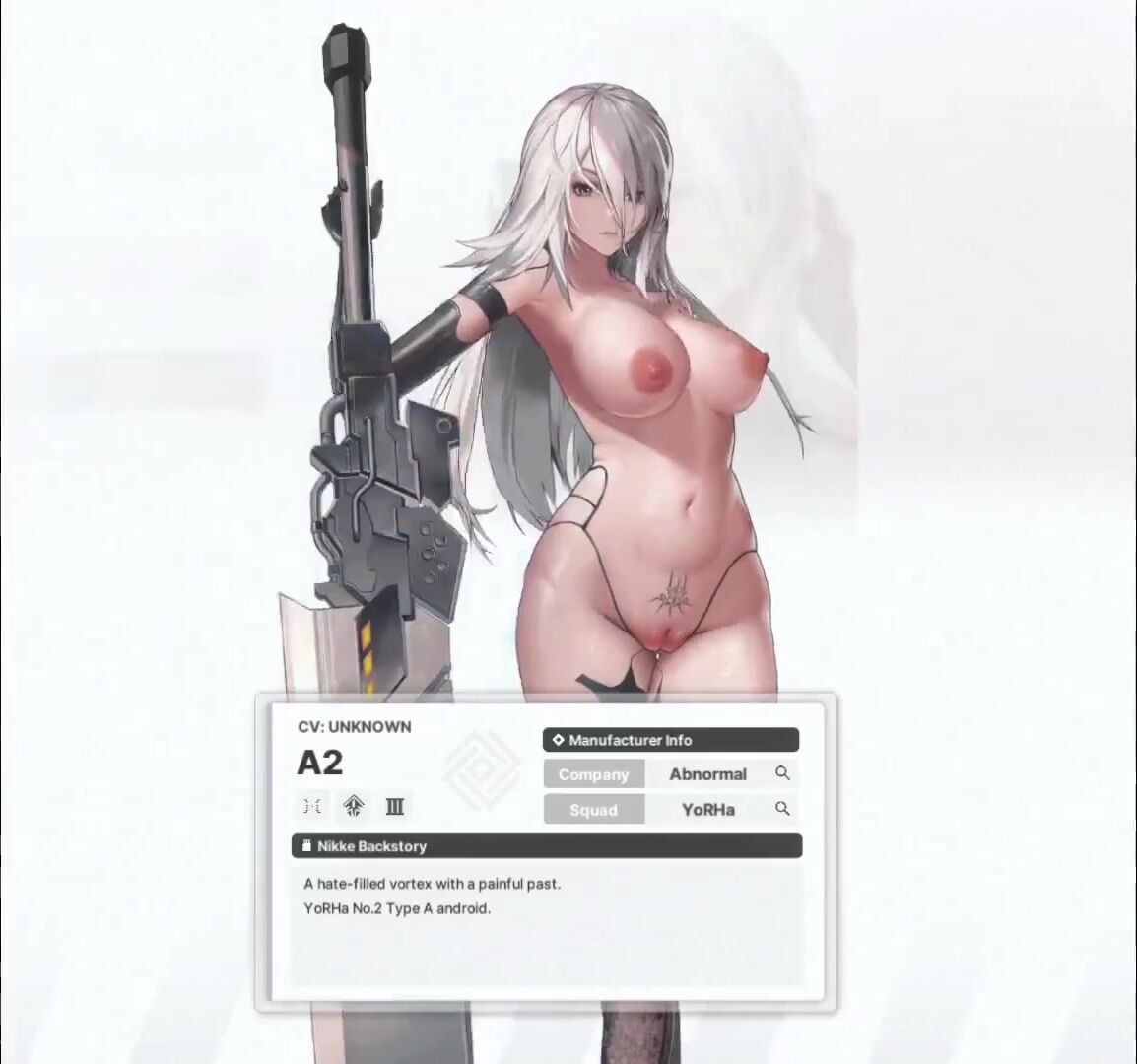 "The sexy naked babe Nikke (Seireiko) shakes her big ass in a provocative way."