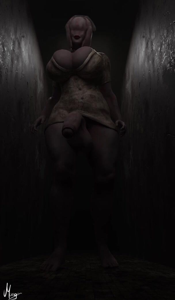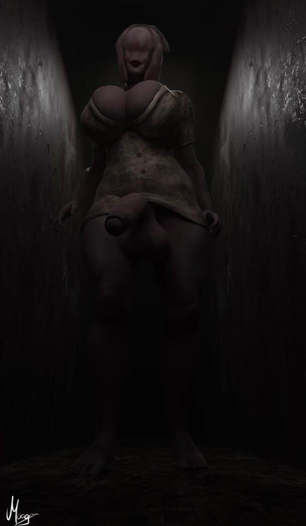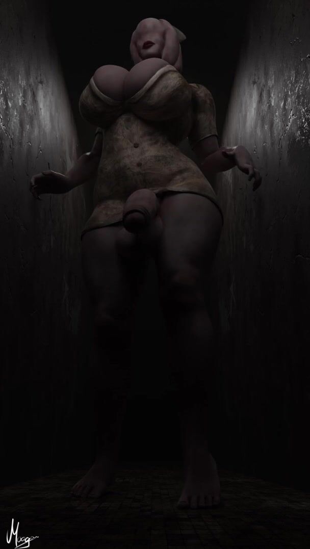 The sexy nurse, Yuri Moogan, takes a stroll in the hospital hallways wearing nothing but her white uniform and high heels