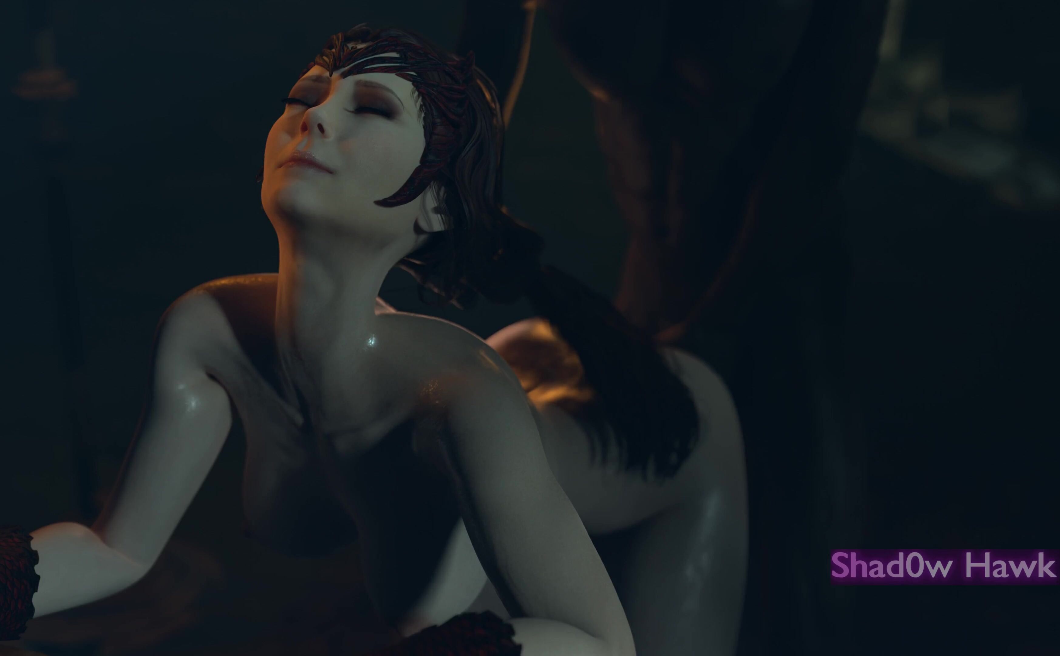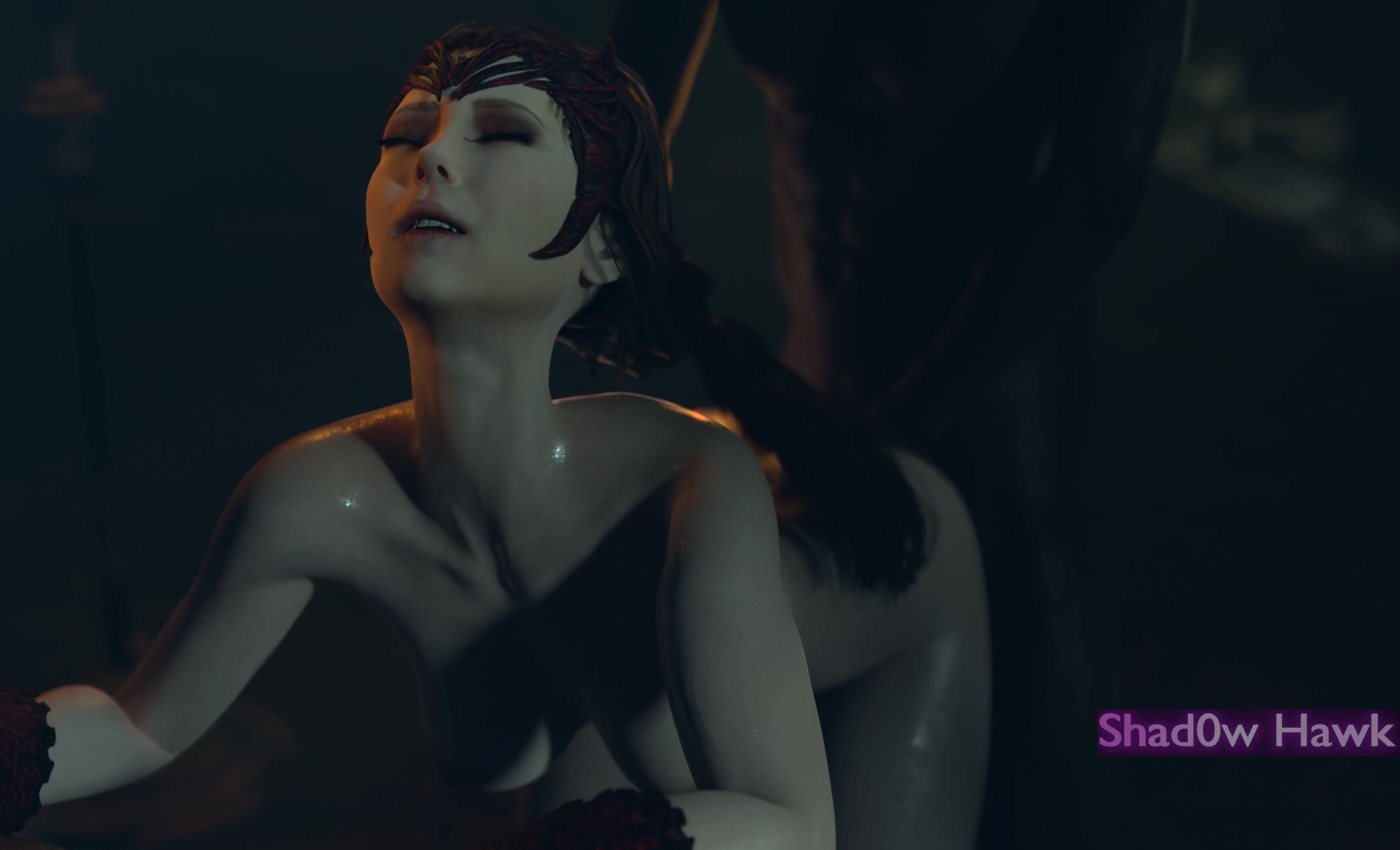 The Shadow Hawk plunged his cock deep into Wandas stretched butthole, causing her to moan in pleasure