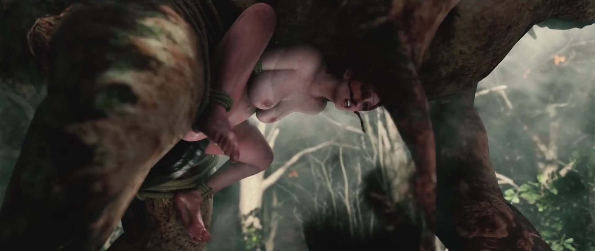The sorceress Triss Merigold and the dwarven warrior Chort engage in a steamy threesome with a mysterious entity that is neither human nor elf