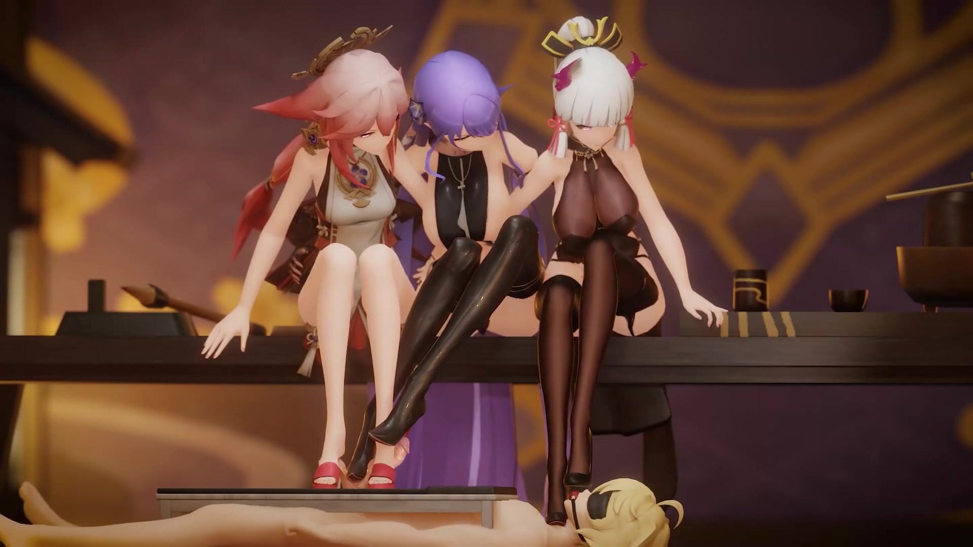 Hentai Porn is a type of Japanese Animation that features explicit sexual behavior and abnormal sexual fetishes. This hentai porn video description is about a hot busty blonde who has her way with two muscular guys. She seduces them both at once, taking their hard cocks in her mouth before riding them both at the same time. They fuck her from behind and then she takes them in turns, one after another, until they all cum together in a hot orgy of pleasure. This is a must-see for any fan of hentai porn!