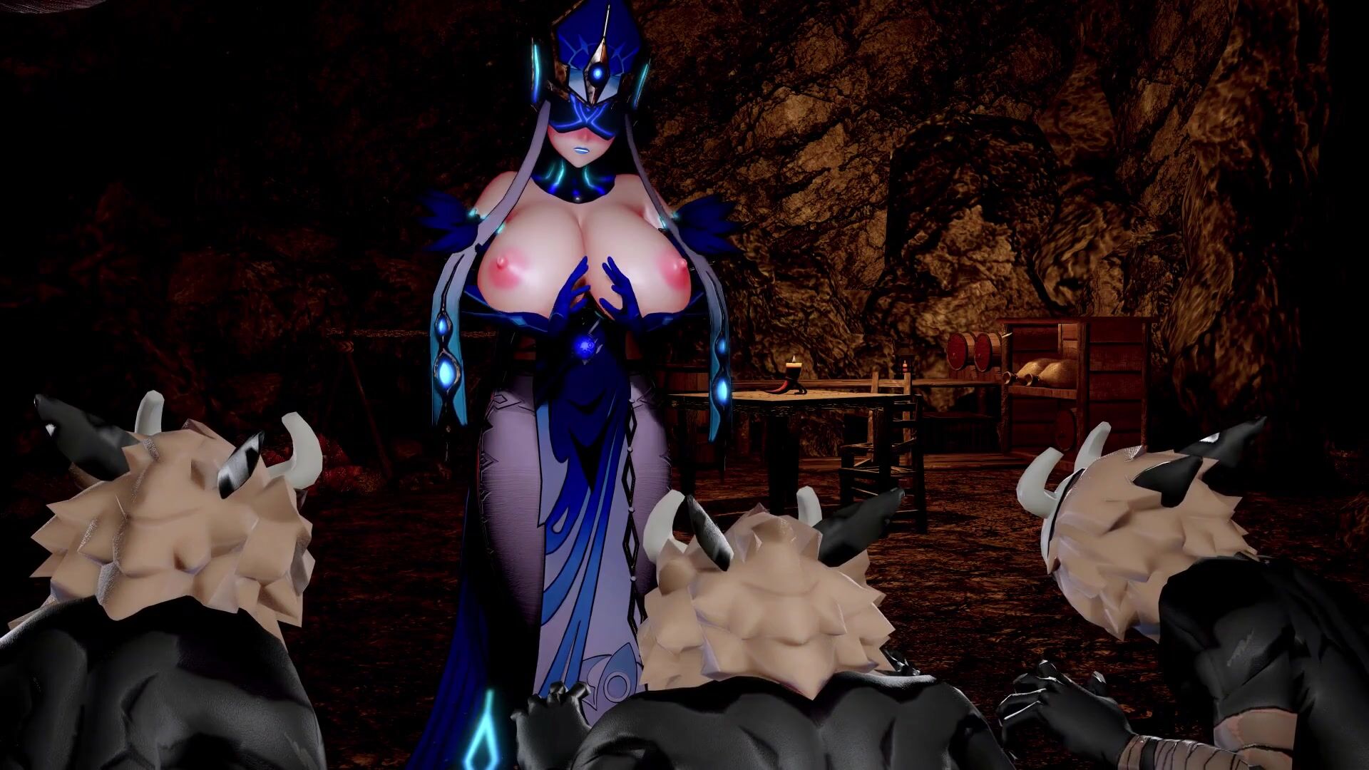 This hentai PORN video description is about a beautiful female warrior who punishes her rebellious slave for refusing to bow down before her. The slave's breasts are chained up and she is for*ced to submit to her mistress by performing various sex acts until she finally gives in.
