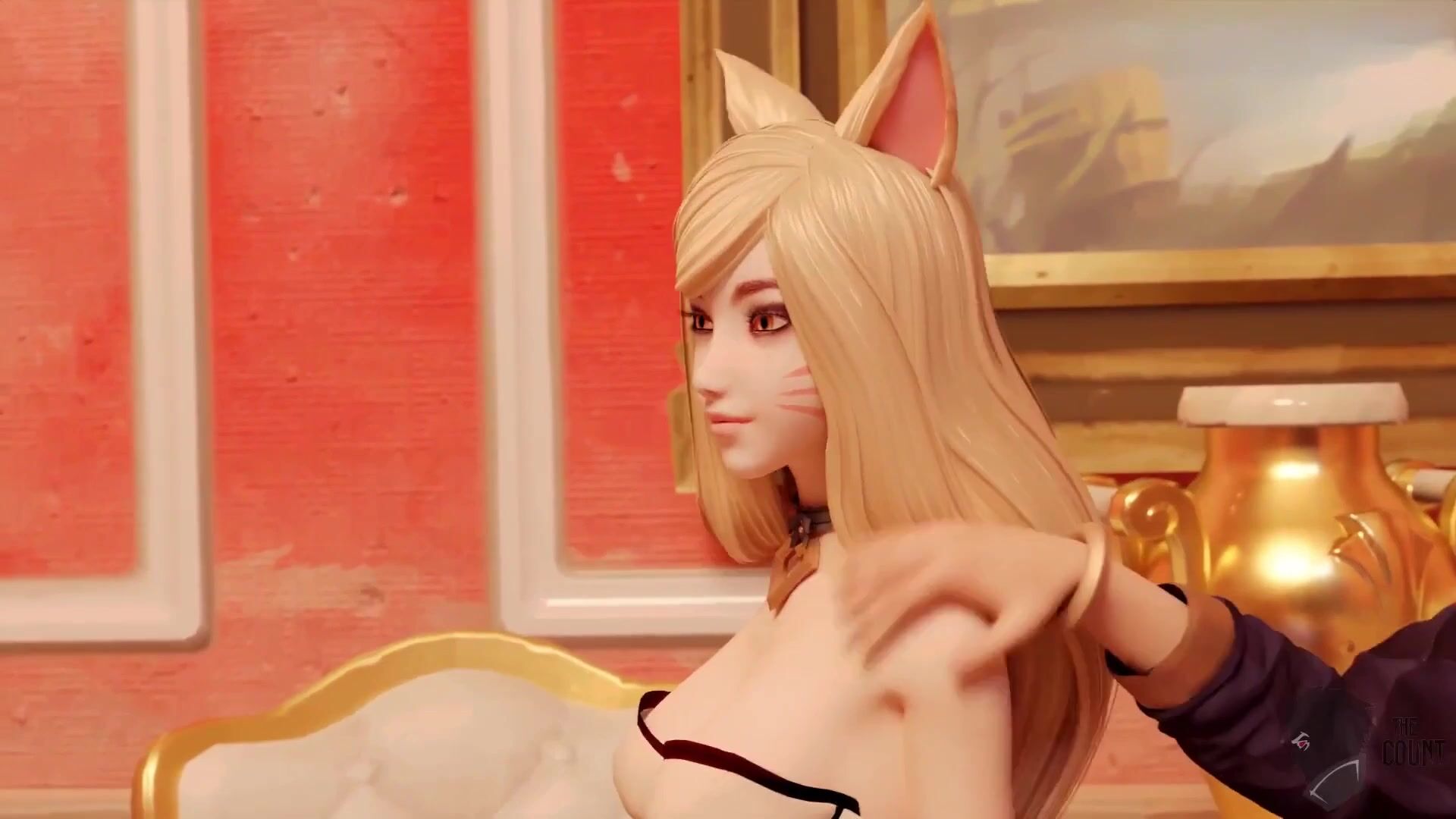 Description: Ahri, a hot and sexy kitten girl, is approached by two skilled assassins named Akali and they end up having a wild threesome gang bang.