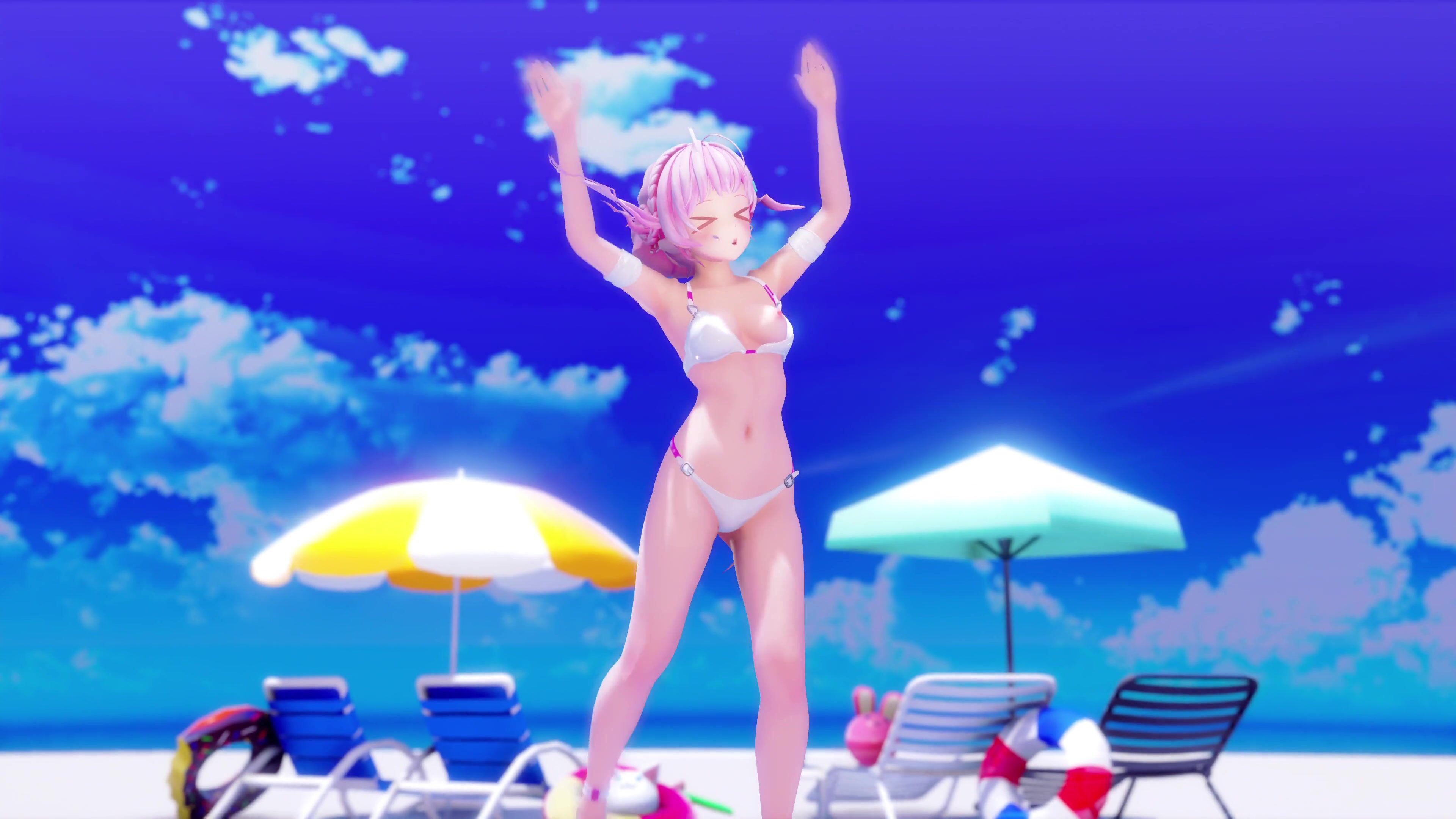 In the middle of a hot summer day, three girls decide to have fun in the pool