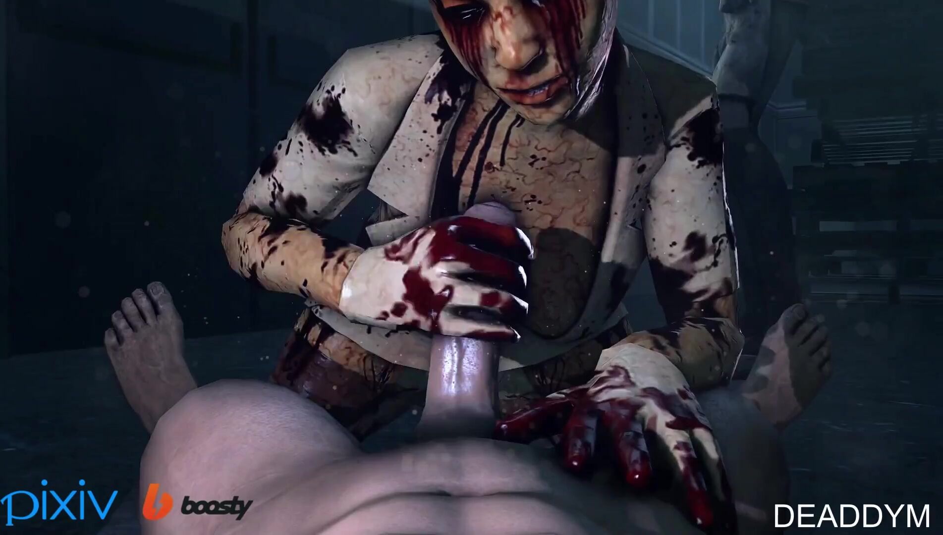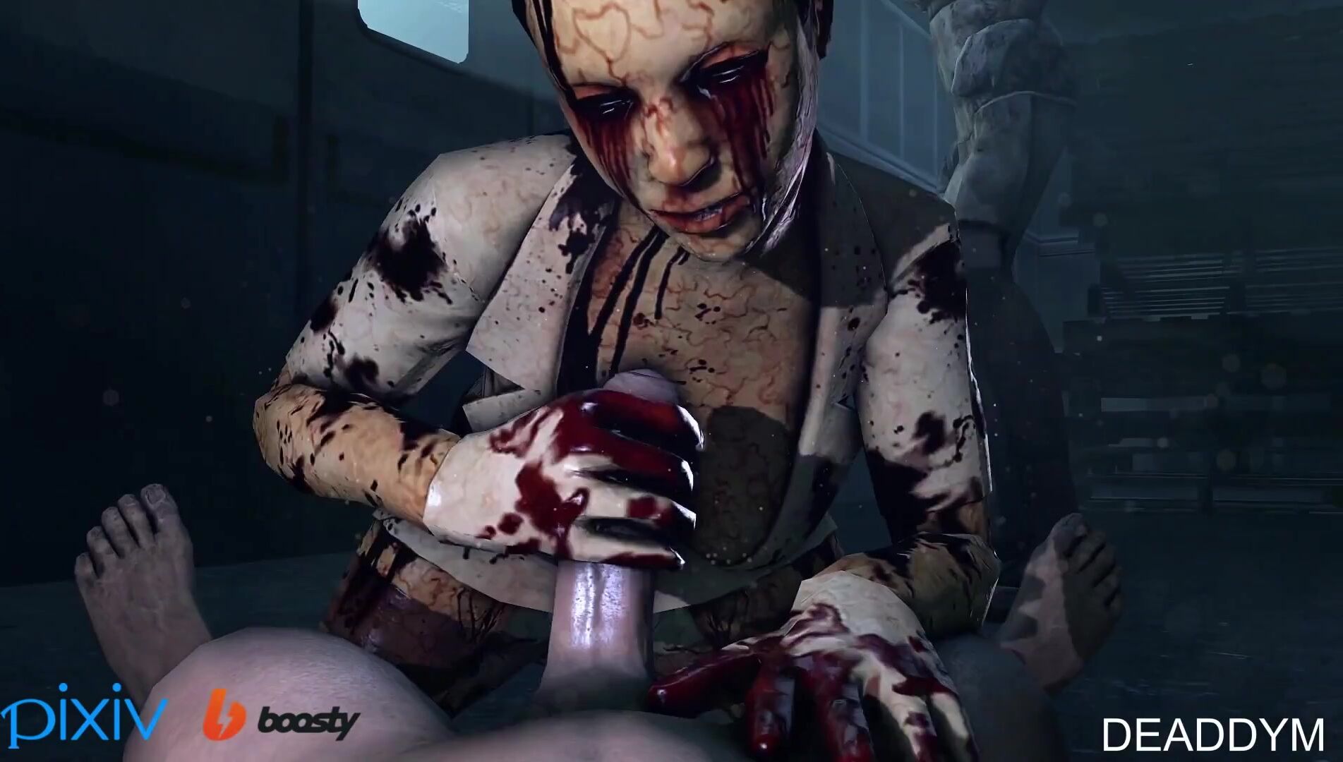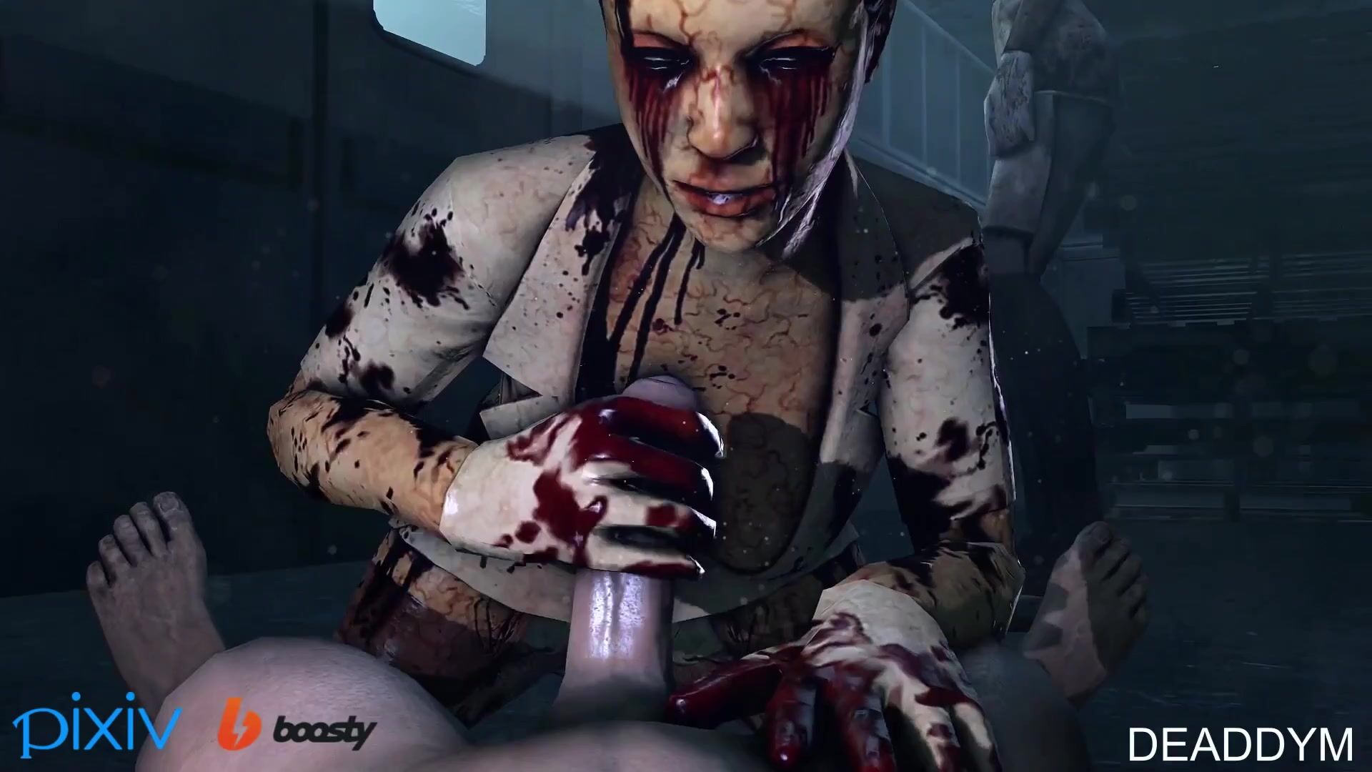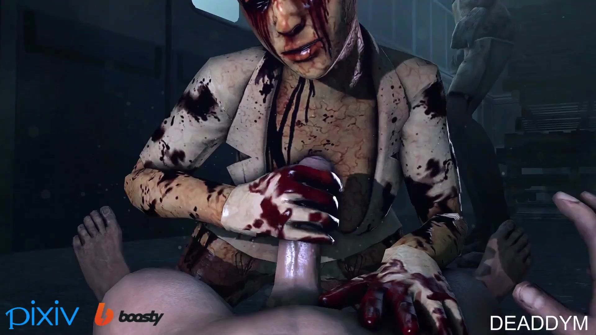 Sexy nurse with bubble head gets paizuri by 5 monsters in Silent Hill
