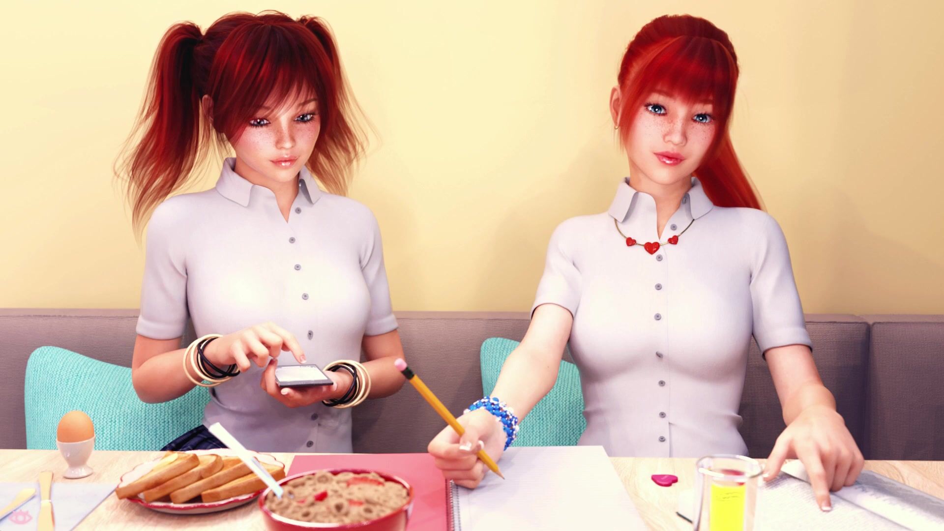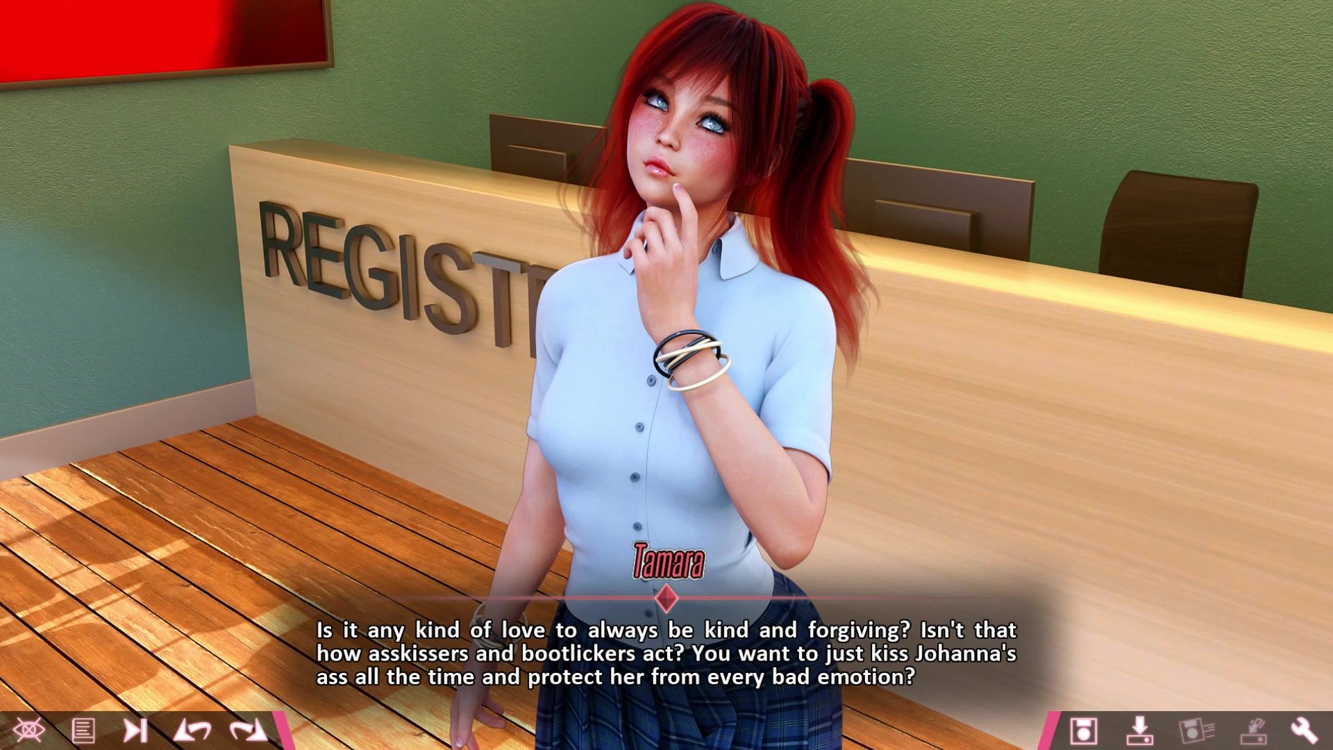 This pornographic video description is a detailed playthrough of Double Homework, episode 5B "Palmer Love Joint". In this chapter, nothing much happens except for a lot of running around Johanna, who seems to be acting as normally as possible around her siblings but this only makes Alvin and Tamara realize that her trauma must run even deeper than they suspected. Still, this does not exactly prevent Tamara from continuing to mess around with Alvin, tempting him with false promises and castigating him for taking it too easy on Johanna. Meanwhile, Ms. Walsh continues to be even more terrorized by Dr. Mosely's odd insinuations, and only Henry remains as cool as a cucumber, relieving the overall tension by inviting Alvin to a Magic The Gathering tournament.