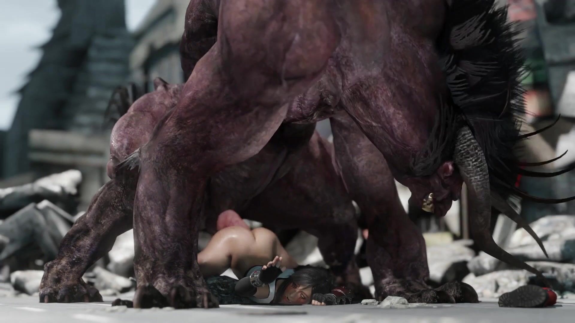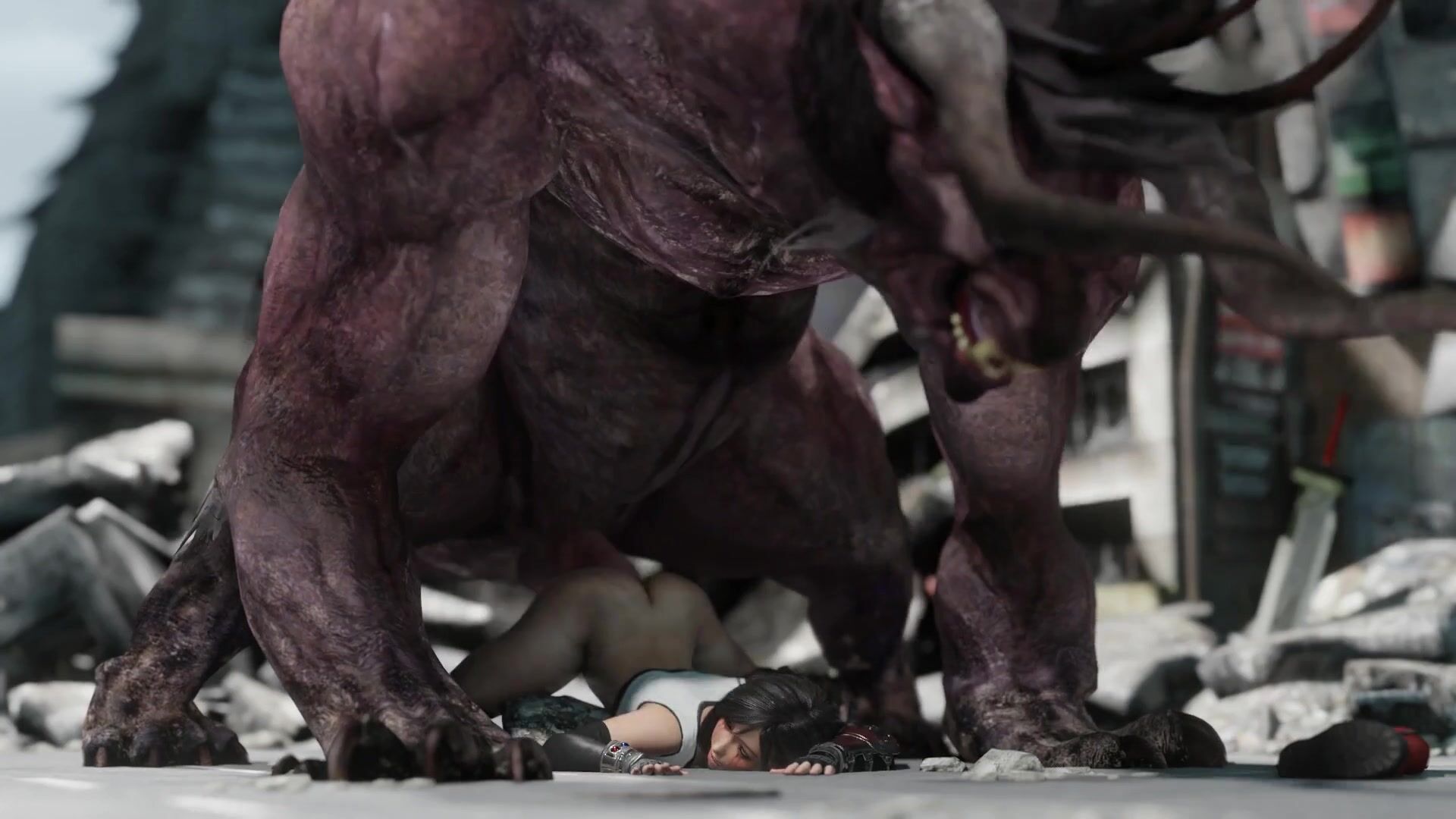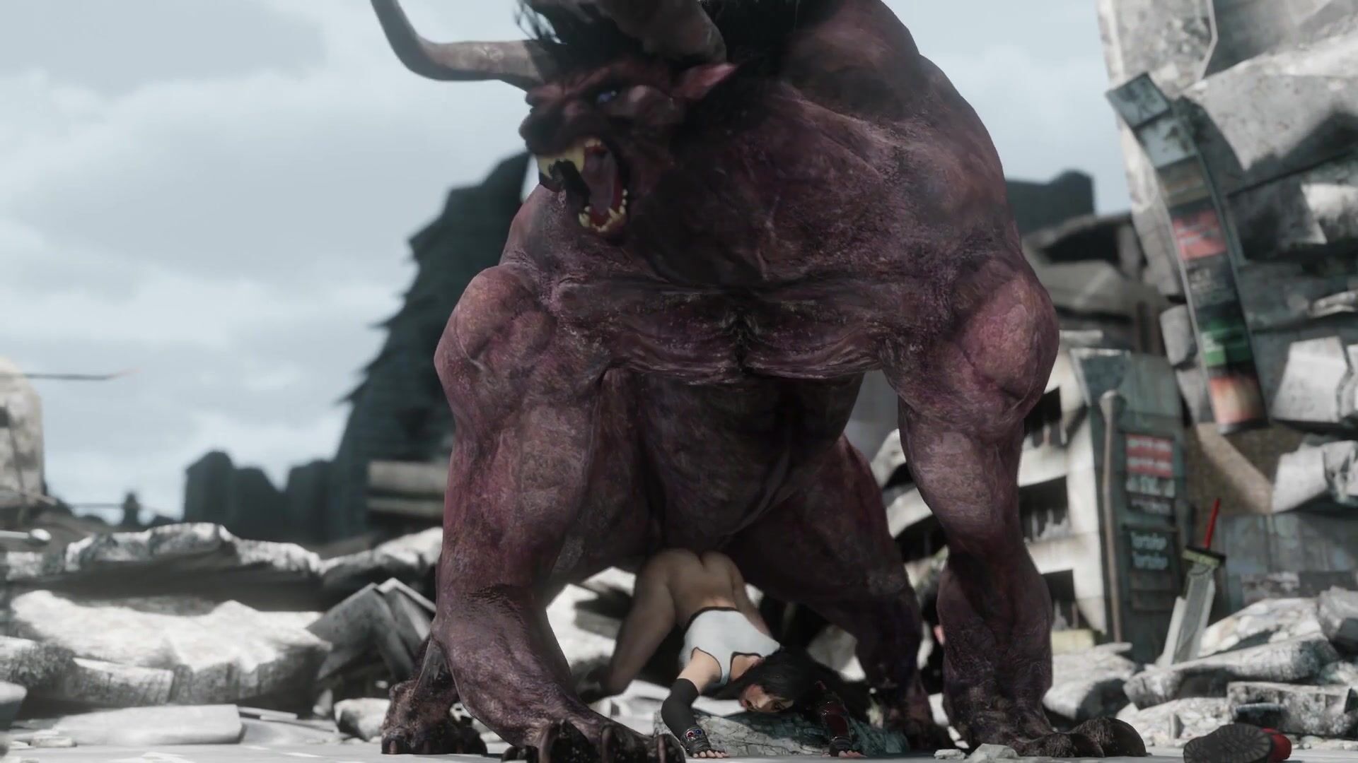 Tifa and Behemoth team up to take on Instant Loss in a hardcore hentai threesome!