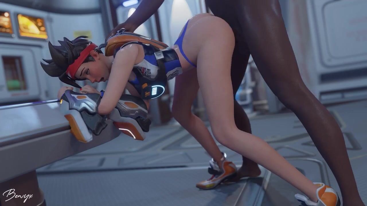 Tracer faces off against a huge enemy (blacked) in an intense and sexy fight!
