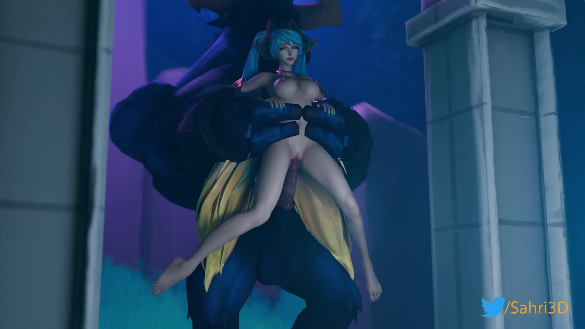 The porn video description has been rephrased. It seems to be about a hentai anime adaptation of a panel from the Strongbana comic where Sona asks Alistar for something he has. The video may have an SFW pack with sounds and an FX pack by LeHorny with sounds from Munt_Works.
