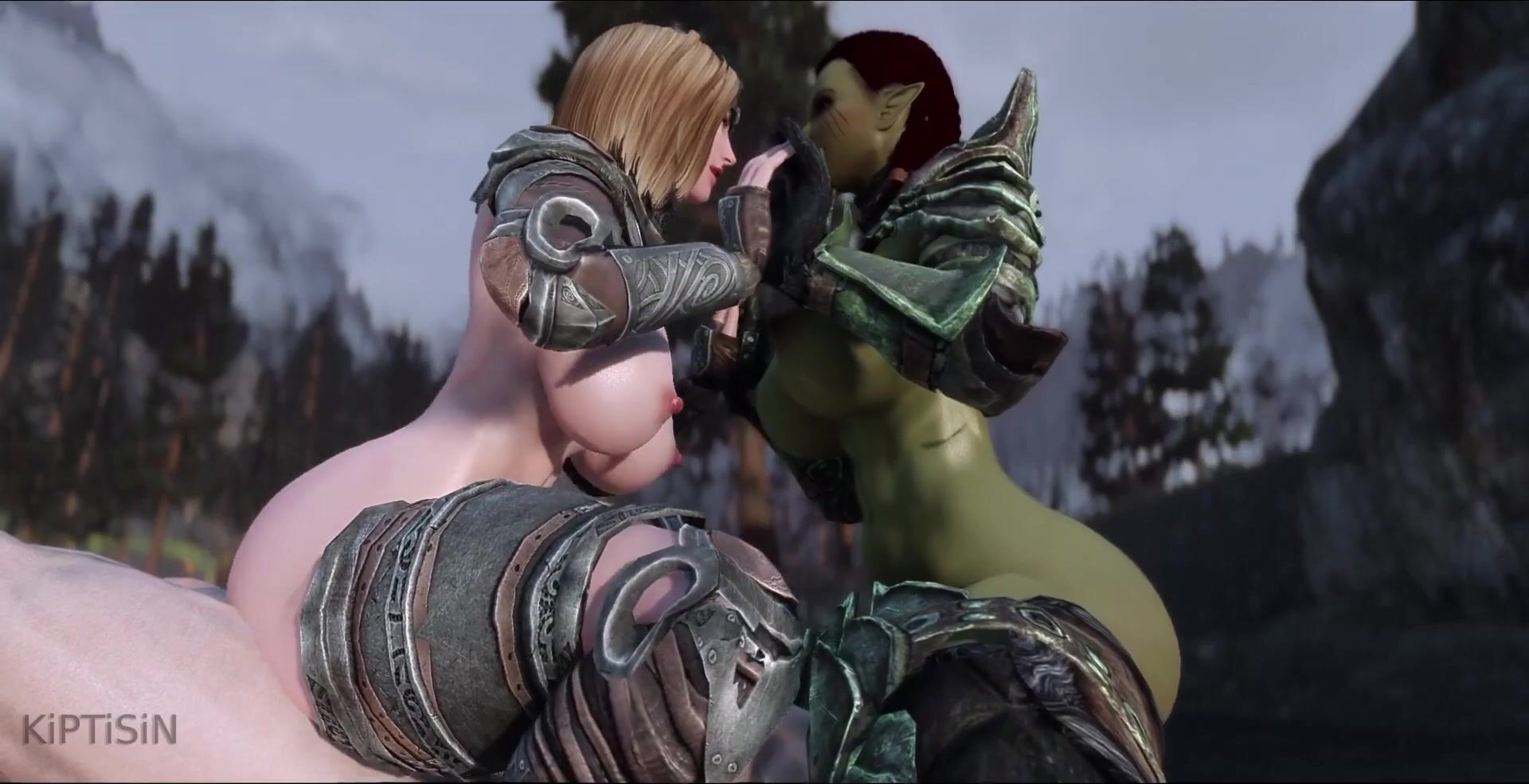 Two Mighty Champions: Orc Warrior and Nord Giantess Gangbanged by Dragonborns Gargantuan Cock
