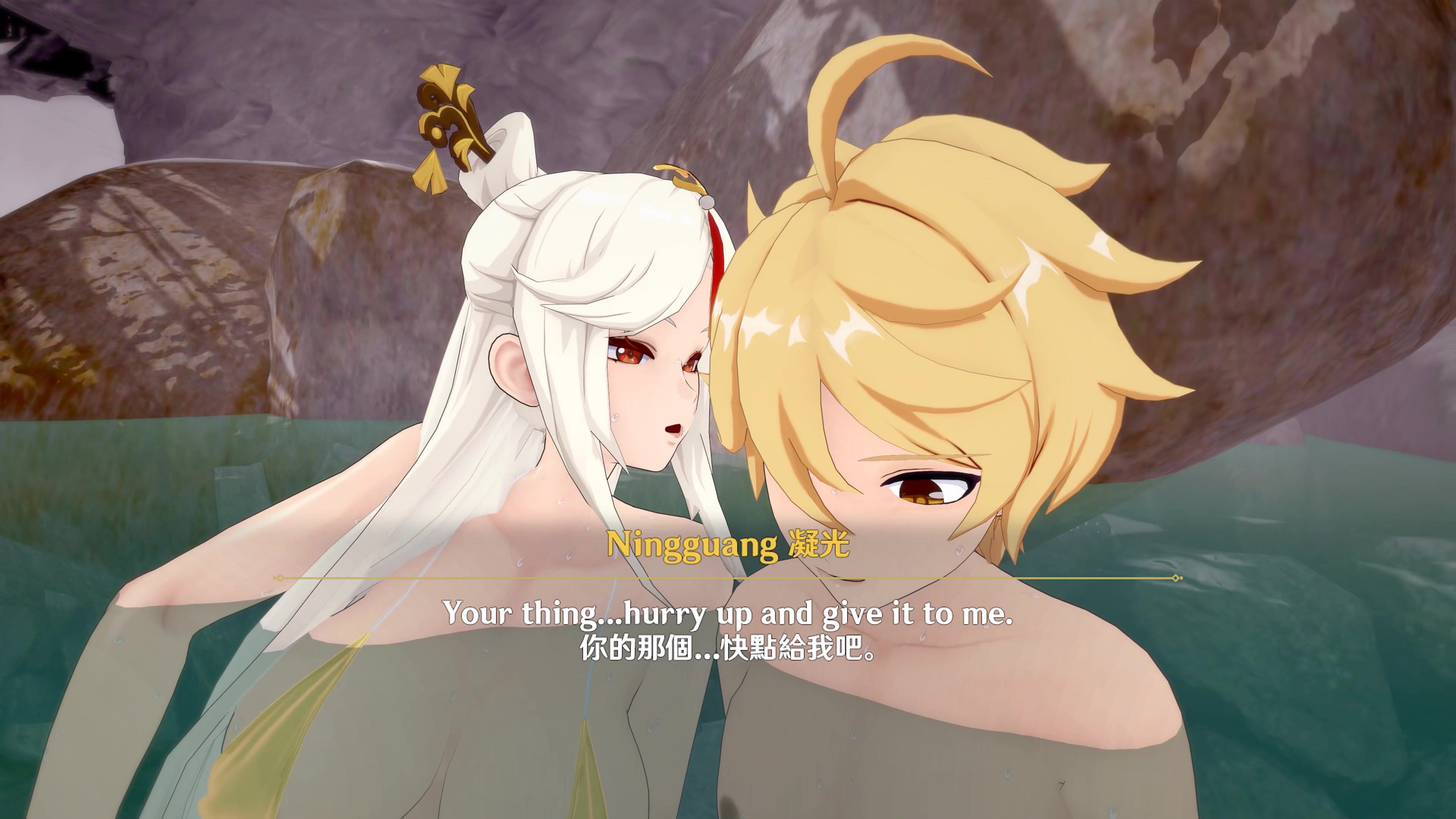 "Two Naked Lovers in a Tiny Onsen: Part 1, Alt Clothing Edition - Ningguang and Shenhe in Ultra HD [Lover]"