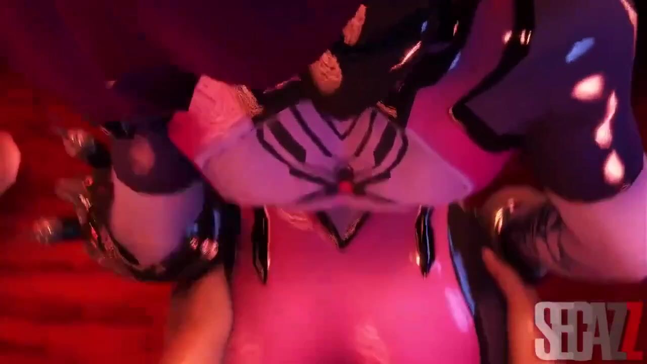 Watch as a hot blonde widowmaker dominates two men by giving them mind-blowing butt jobs while having a threesome with one of her sexy teammates