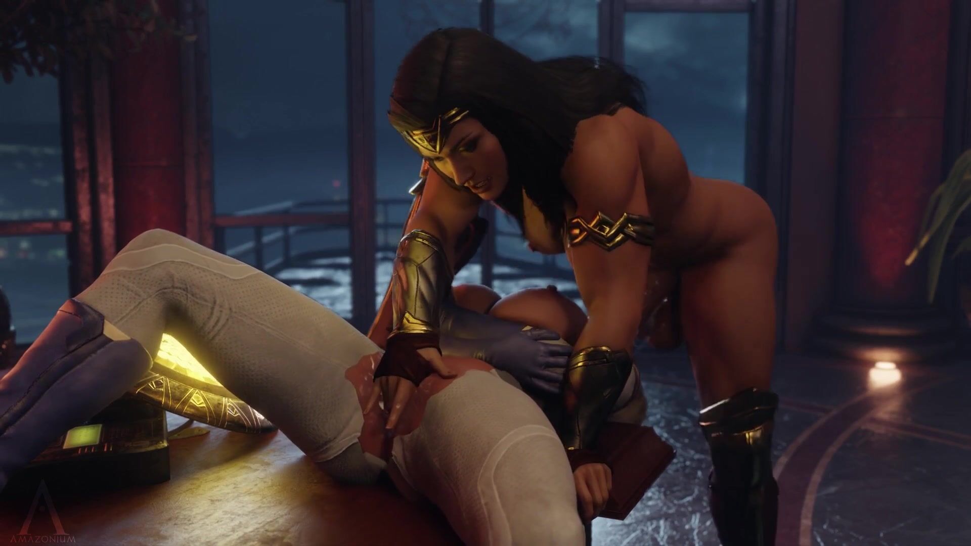 Watch as a powerful futa slut named Amazonium takes on two men in a wonderland of erotic pleasure