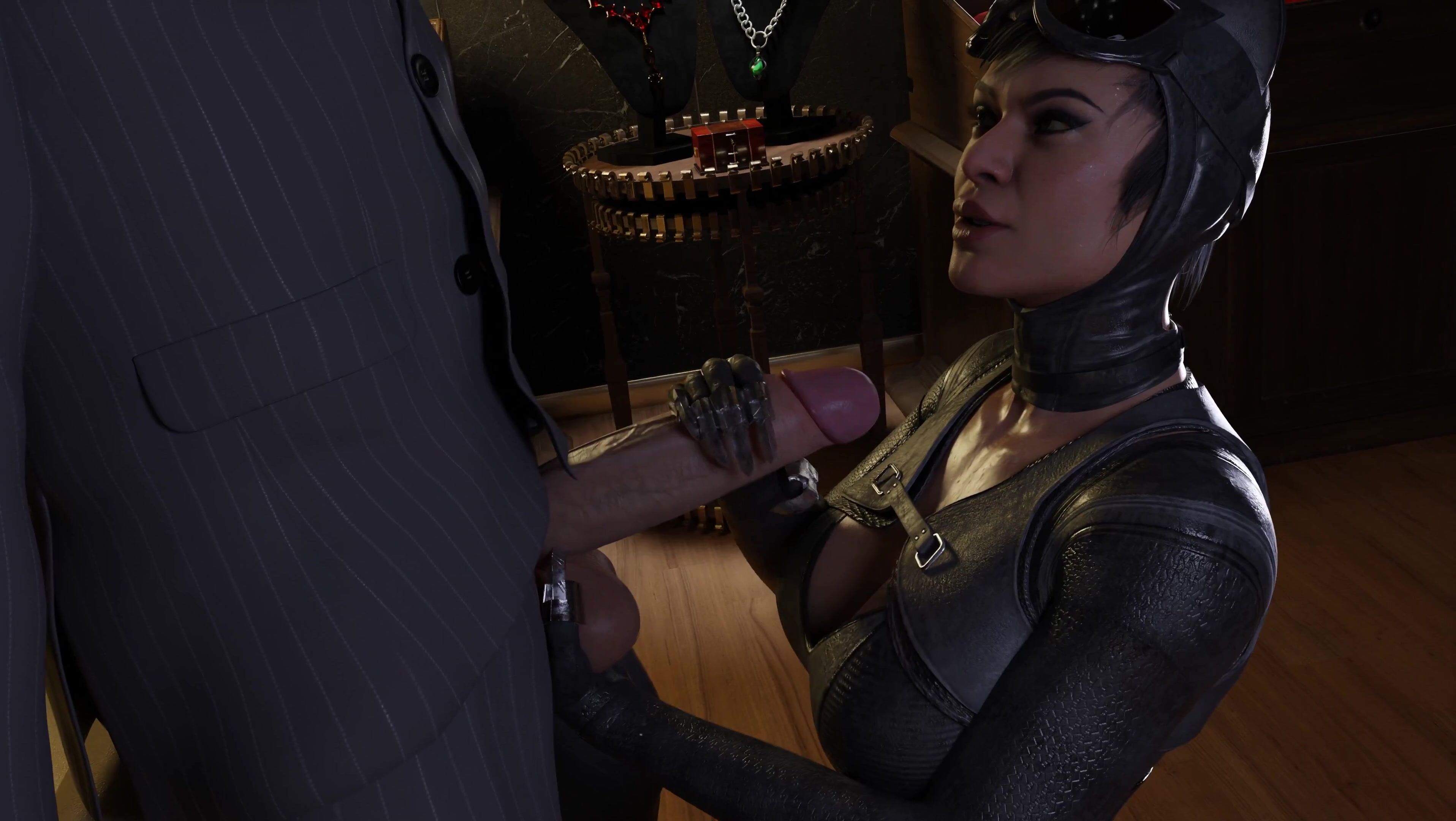 Watch as Catwoman seductively plays with security guards while pulling off a heist at a high-end jewelry store