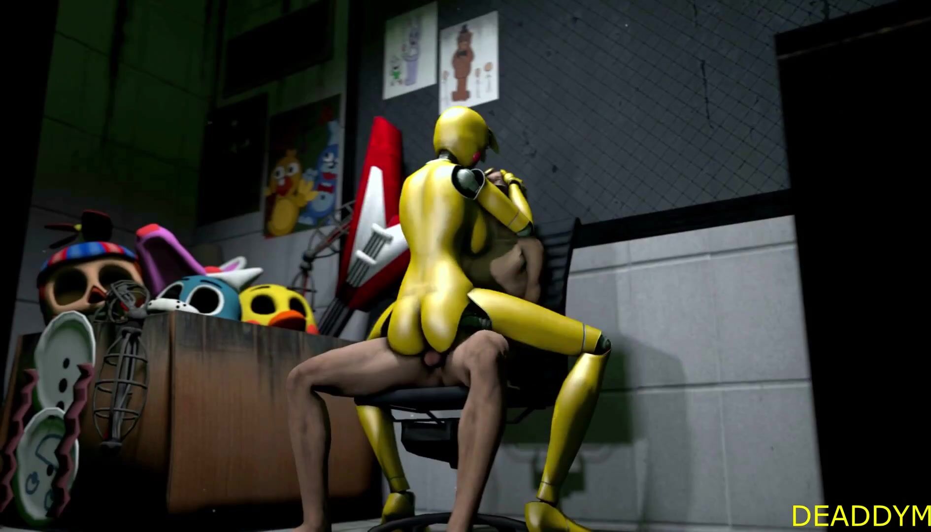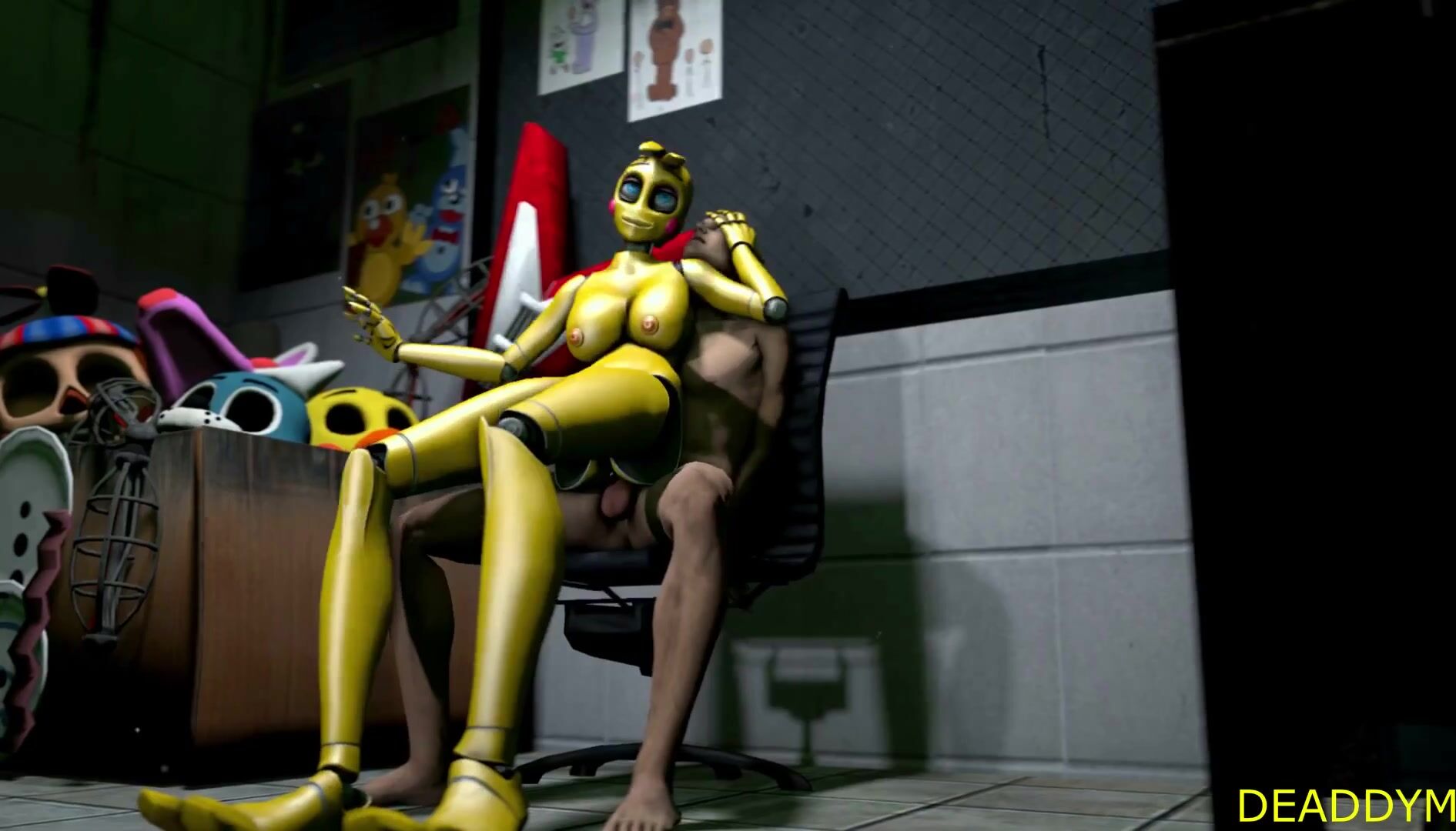 Watch as Chica from Five Nights at Freddys gets fucked by a group of animatronics in this hentai porn video!