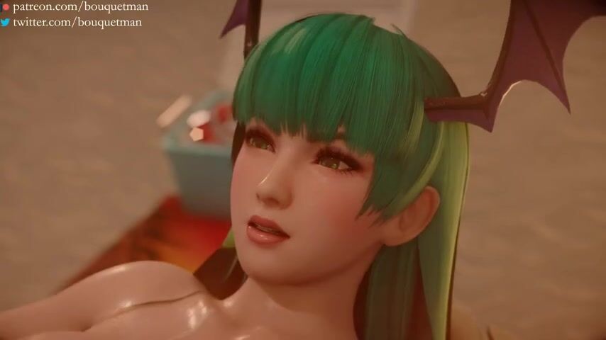 Watch as Morrigan pleasures herself on the beach while taking off her bikini piece by piece