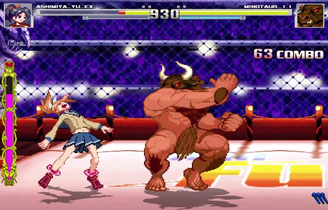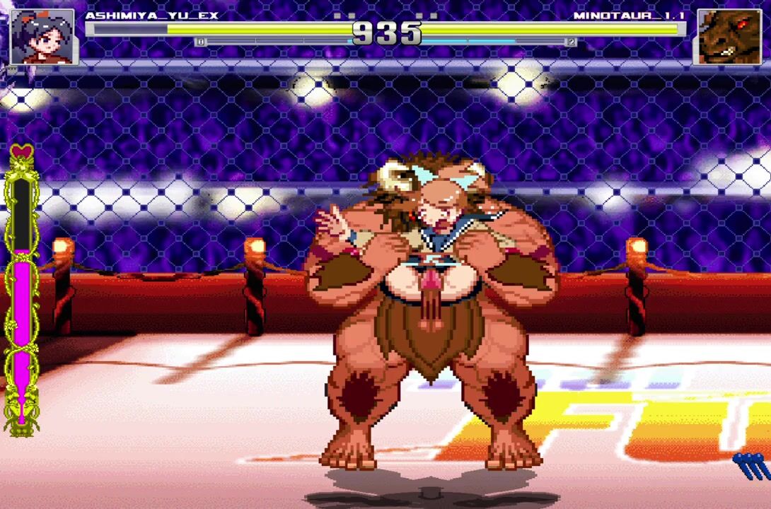 Ashimiya Yu's final showdown with Minotaur. All she has to do is hold on until Minotaur came once to win the martial art tournament.