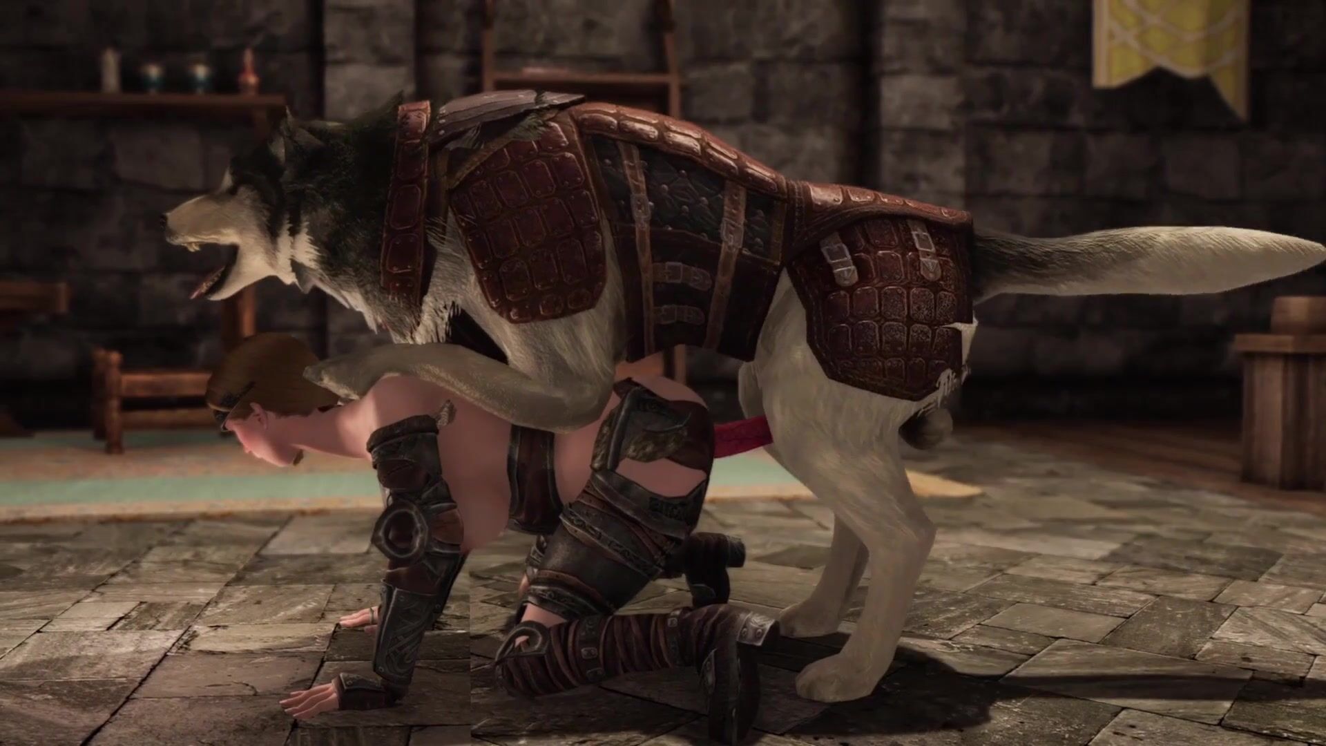 Watch as this Skyrim fan reenacts their favorite fantasy game with a lovable canine companion in this hot hentai video!