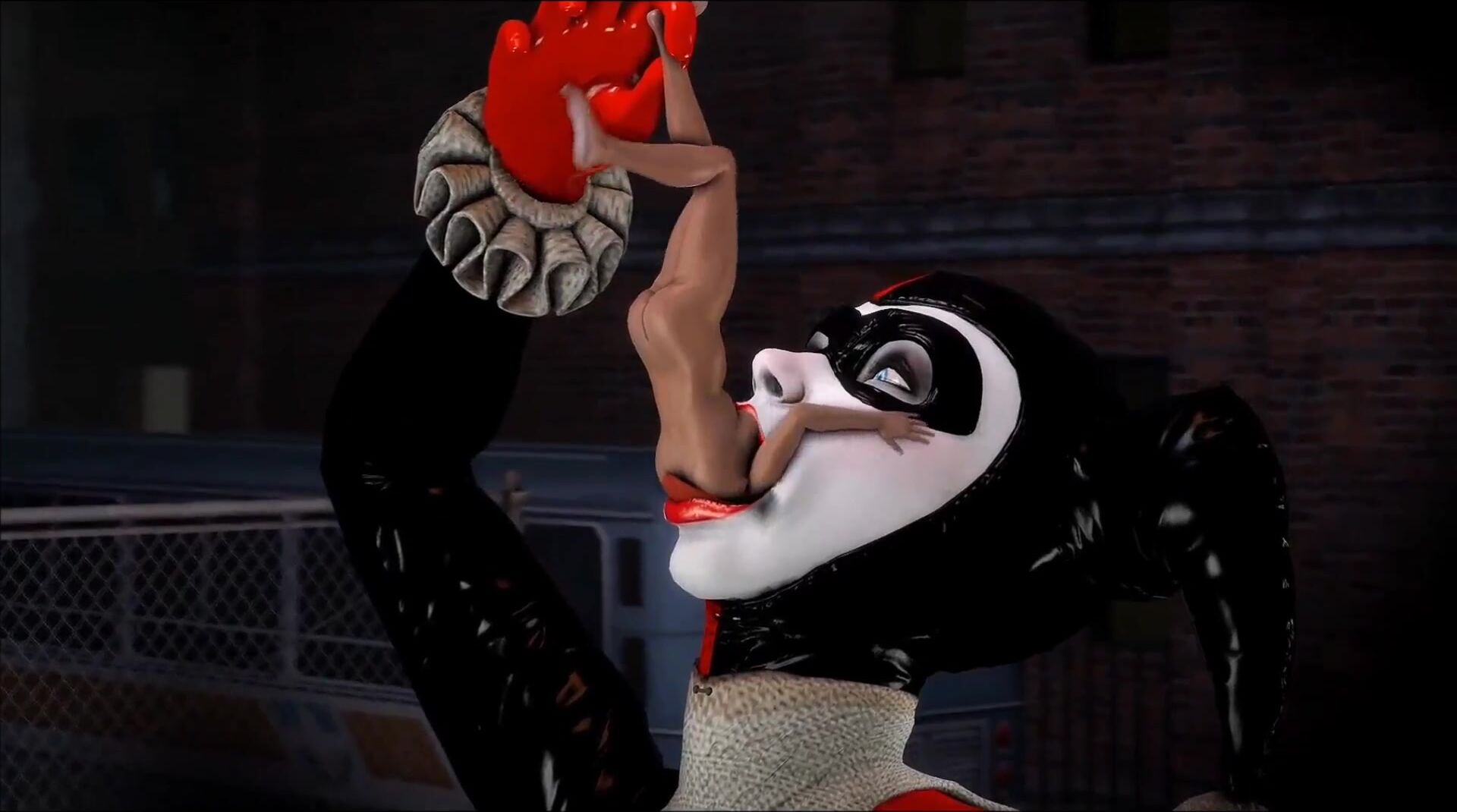 This hentai PORN video description describes Harley Quinn defeating Catwoman and making her into a meal. The video was released in 2016.